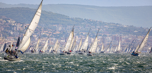 Sélection d'images de la Barcolana 2022, à Trieste, sur la journée du 9 Octobre, qui a vu la victoire de Deep Blue, avec Wendy Schmidt à la barre.