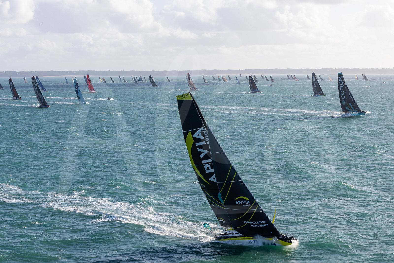 | Description | SAINT-MALO, FRANCE - NOVEMBRE 9 : Imoca fleet is leaded by Apivia, skipper Charlie Dalin (FRA) during start of La Route du Rhum - Destination Guadeloupe 2022 on November 9, 2022, in Saint-Malo, France. (photo Jean-Marie LIOT / AleA) |