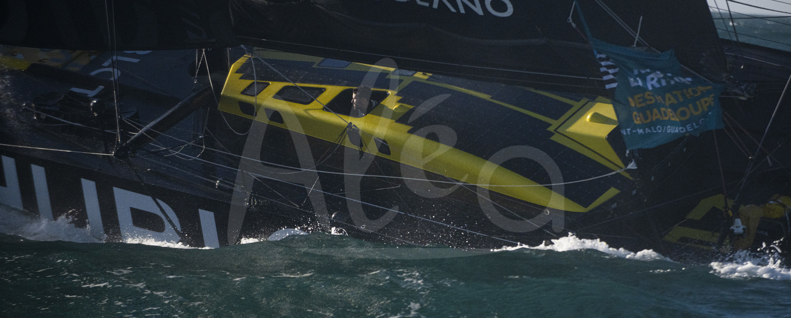 Description | SAINT-MALO, FRANCE - NOVEMBRE 9 : Imoca Hublot, skipper Alan Roura (SUI) is illustrated during start of La Route du Rhum - Destination Guadeloupe 2022 on November 9, 2022, in Saint-Malo, France. (photo Vincent Curutchet / AleA) |