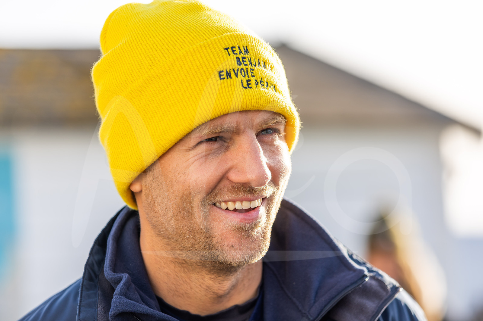 Description | SAINT-MALO, FRANCE - NOVEMBRE 9 : Monnoyeur - Duo for a Job skipper Benjamin Ferré (FRA) is being interviewed by media before start of La Route du Rhum - Destination Guadeloupe 2022 on November 9, 2022, in Saint-Malo, France. (photo Jean-Marie LIOT / AleA) |