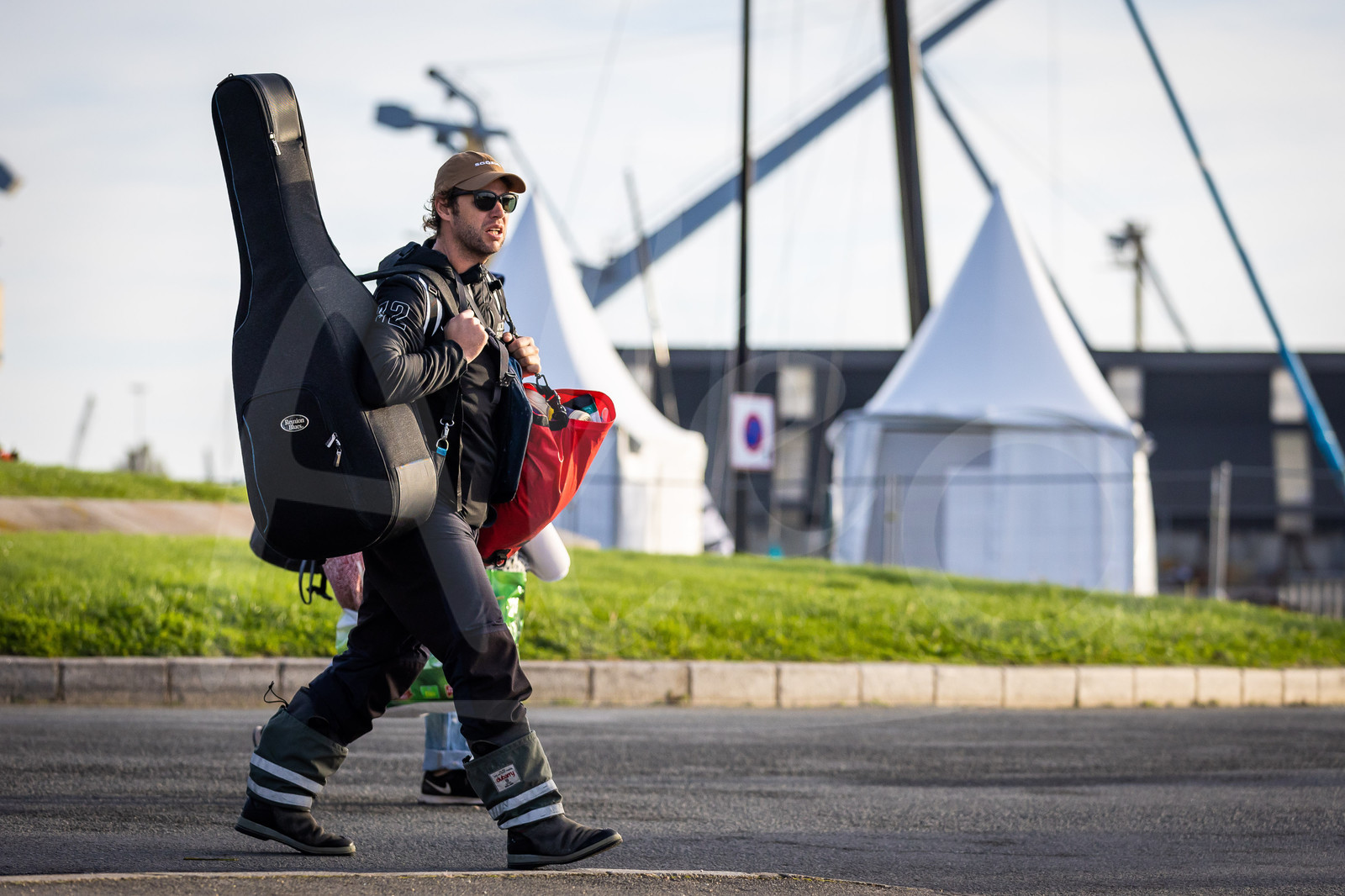 Description | SAINT-MALO, FRANCE - NOVEMBRE 9 : Mieux, skipper Arthur Le Vaillant, is arriving with his guitar before start of La Route du Rhum - Destination Guadeloupe 2022 on November 9, 2022, in Saint-Malo, France. (photo Jean-Marie LIOT / AleA) |