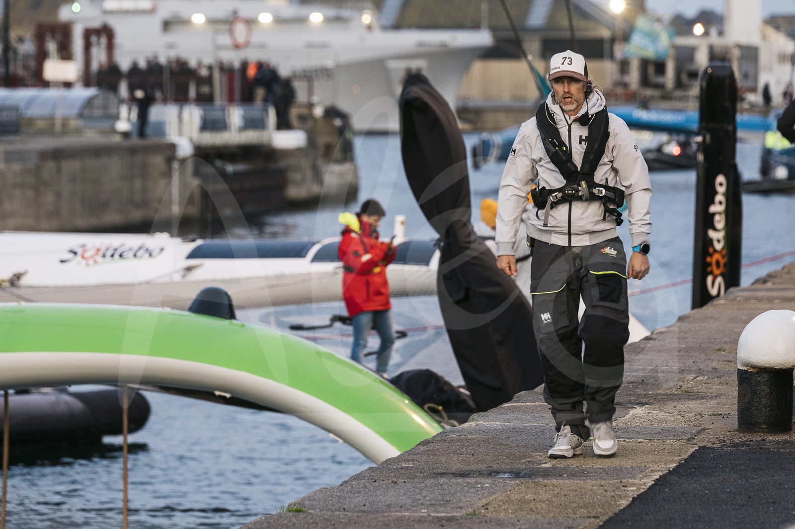 | Description | SAINT-MALO, FRANCE - NOVEMBER 4 : Boat captain François Duguet is portraited watching Ultim boat Sodebo Ultim 3 in the locks before start of the Route du Rhum Destination Guadeloupe, in Saint-Malo on November 4th, 2022 - (photo Olivier Blanchet / AleA) |
