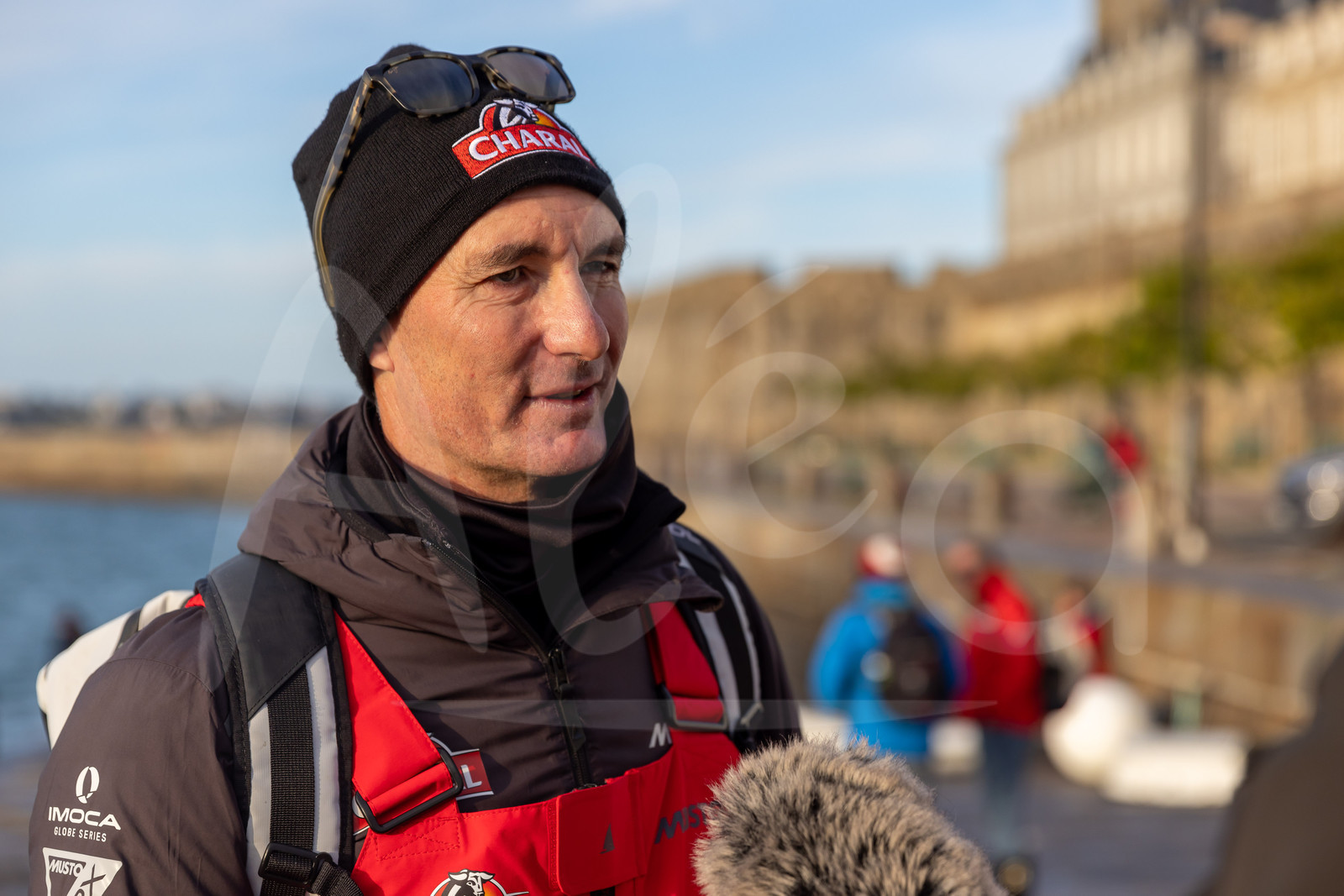 Description | SAINT-MALO, FRANCE - NOVEMBRE 9 : Charal skipper Jeremie Beyou (FRA) is being interviewed by media before start of La Route du Rhum - Destination Guadeloupe 2022 on November 9, 2022, in Saint-Malo, France. (photo Jean-Marie LIOT / AleA) |