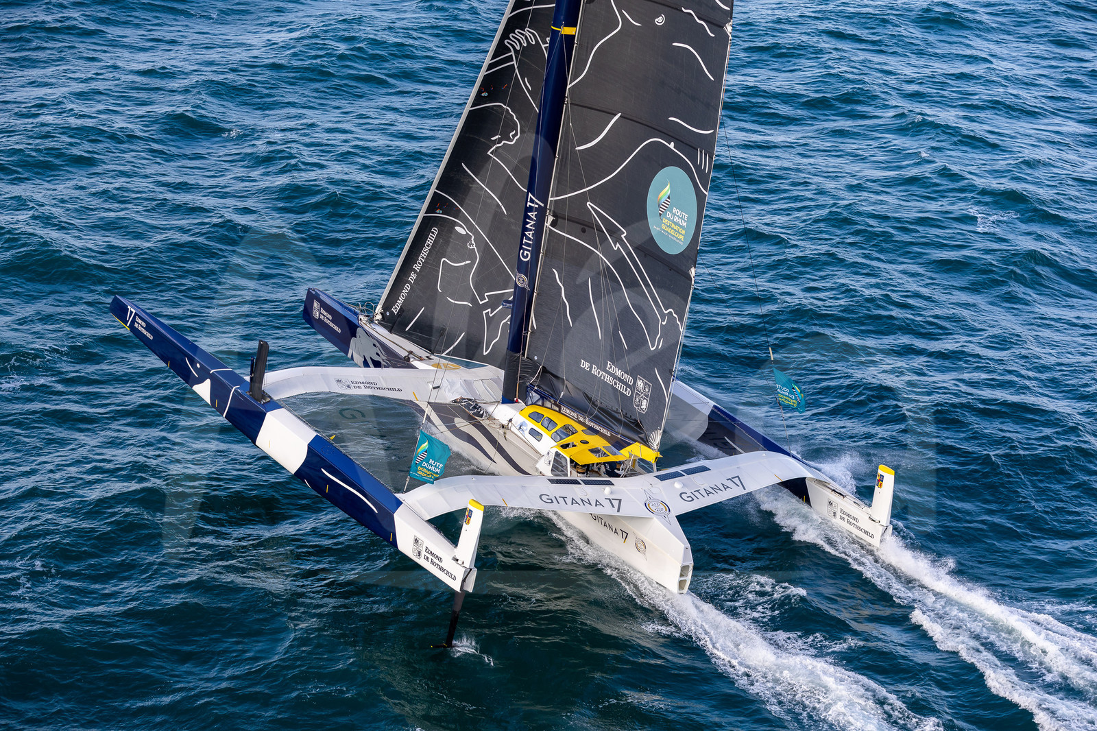 Description | SAINT-MALO, FRANCE - NOVEMBRE 9 : Ultim Maxi Edmond de Rothschild, skipper Charles Caudrelier, is competing during start of La Route du Rhum - Destination Guadeloupe 2022 on November 9, 2022, in Saint-Malo, France. (photo Jean-Marie LIOT / AleA) |
