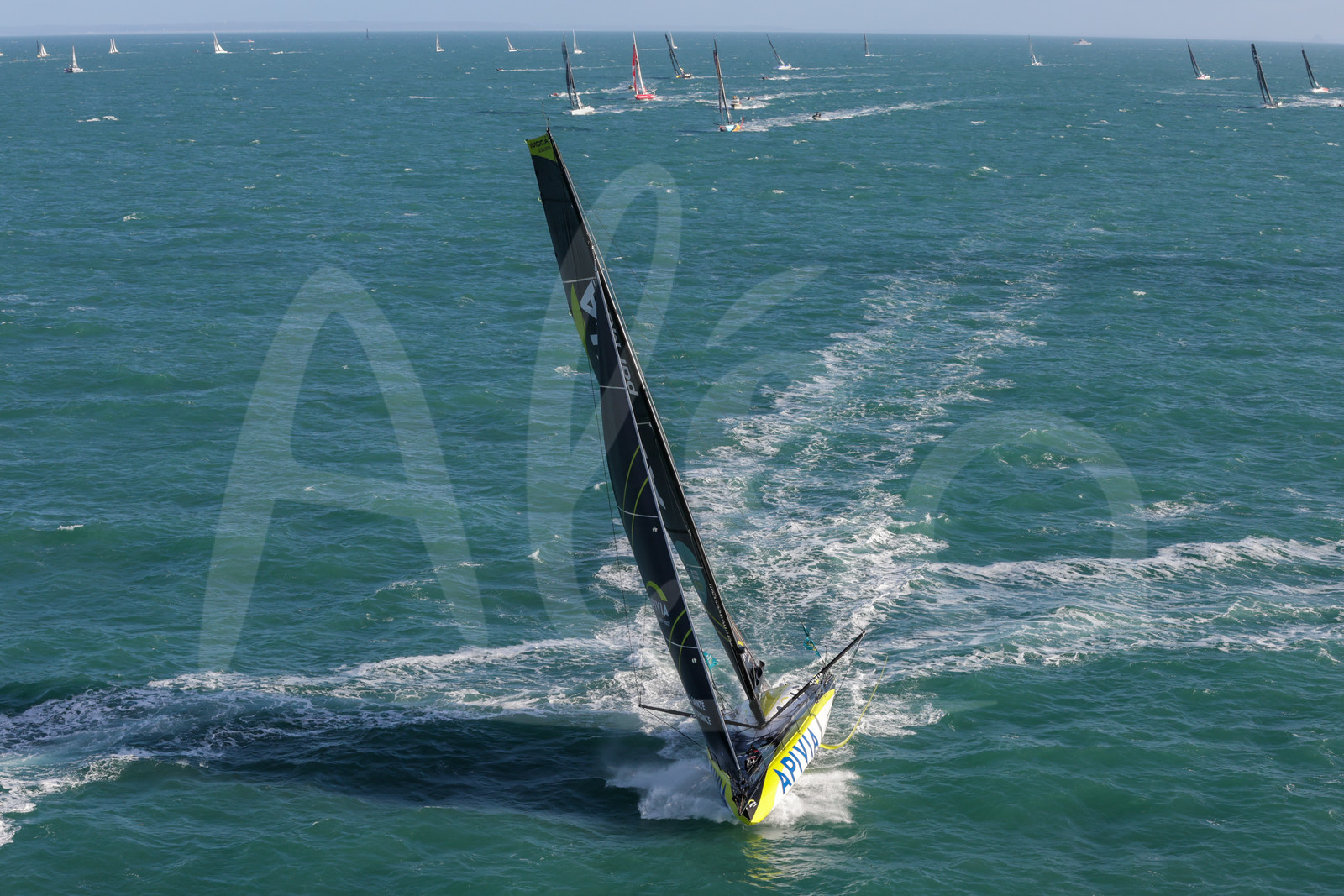 | Description | SAINT-MALO, FRANCE - NOVEMBRE 9 : Apivia, skipper Charlie Dalin (FRA) leads the fleet of Imoca Boats during start of La Route du Rhum - Destination Guadeloupe 2022 on November 9, 2022, in Saint-Malo, France. (photo Jean-Marie LIOT / AleA) |