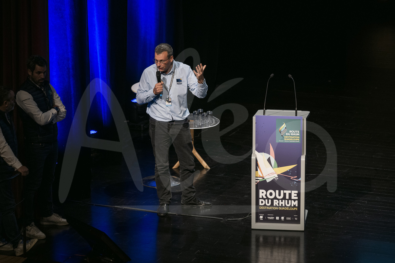 | Description | SAINT-MALO, FRANCE - NOVEMBER 5 : Cyrille Duchesne from METEO CONSULT announces the postponement of the departure of the Route du Rhum Destination Guadeloupe, in Saint-Malo on November 5th, 2022 - (photo Olivier Blanchet / AleA) |