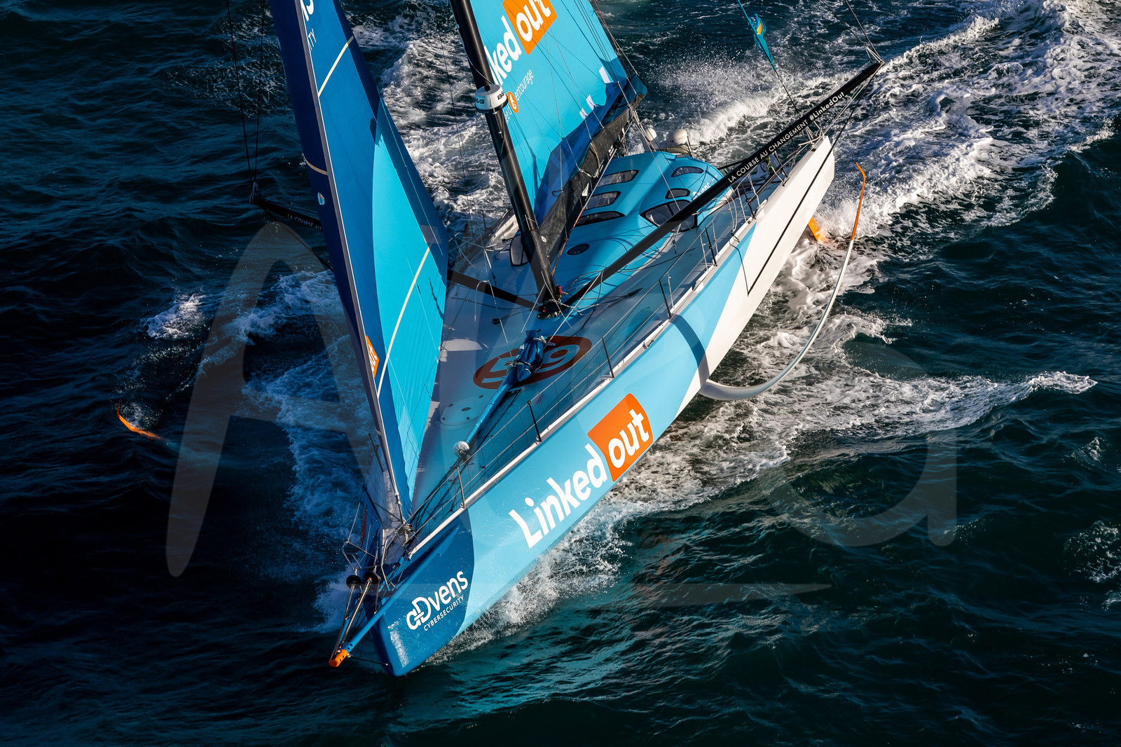 Description | SAINT-MALO, FRANCE - NOVEMBRE 9 : Imoca LinkedOut, skipper Thomas Ruyant (FRA) is competing during start of La Route du Rhum - Destination Guadeloupe 2022 on November 9, 2022, in Saint-Malo, France. (photo Jean-Marie LIOT / AleA) |