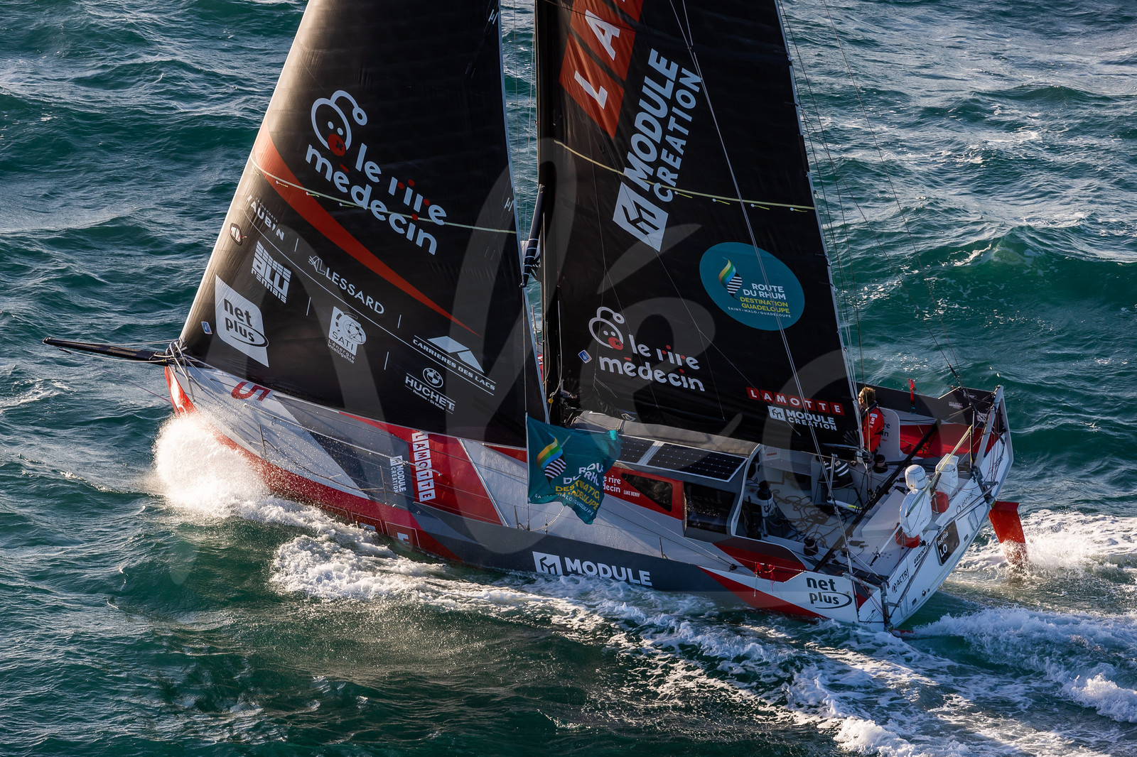 Description | SAINT-MALO, FRANCE - NOVEMBRE 9 : Class 40 Lamotte - Module Creation, skipper Luke Berry, is competing during start of La Route du Rhum - Destination Guadeloupe 2022 on November 9, 2022, in Saint-Malo, France. (photo Jean-Marie LIOT / AleA) |