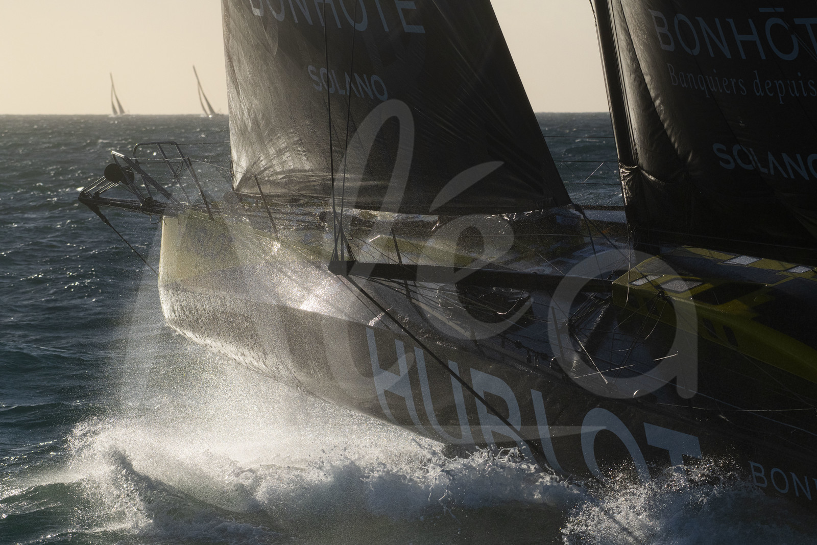 Description | SAINT-MALO, FRANCE - NOVEMBRE 9 : Imoca Hublot, skipper Alan Roura (SUI) is illustrated during start of La Route du Rhum - Destination Guadeloupe 2022 on November 9, 2022, in Saint-Malo, France. (photo Vincent Curutchet / AleA) |
