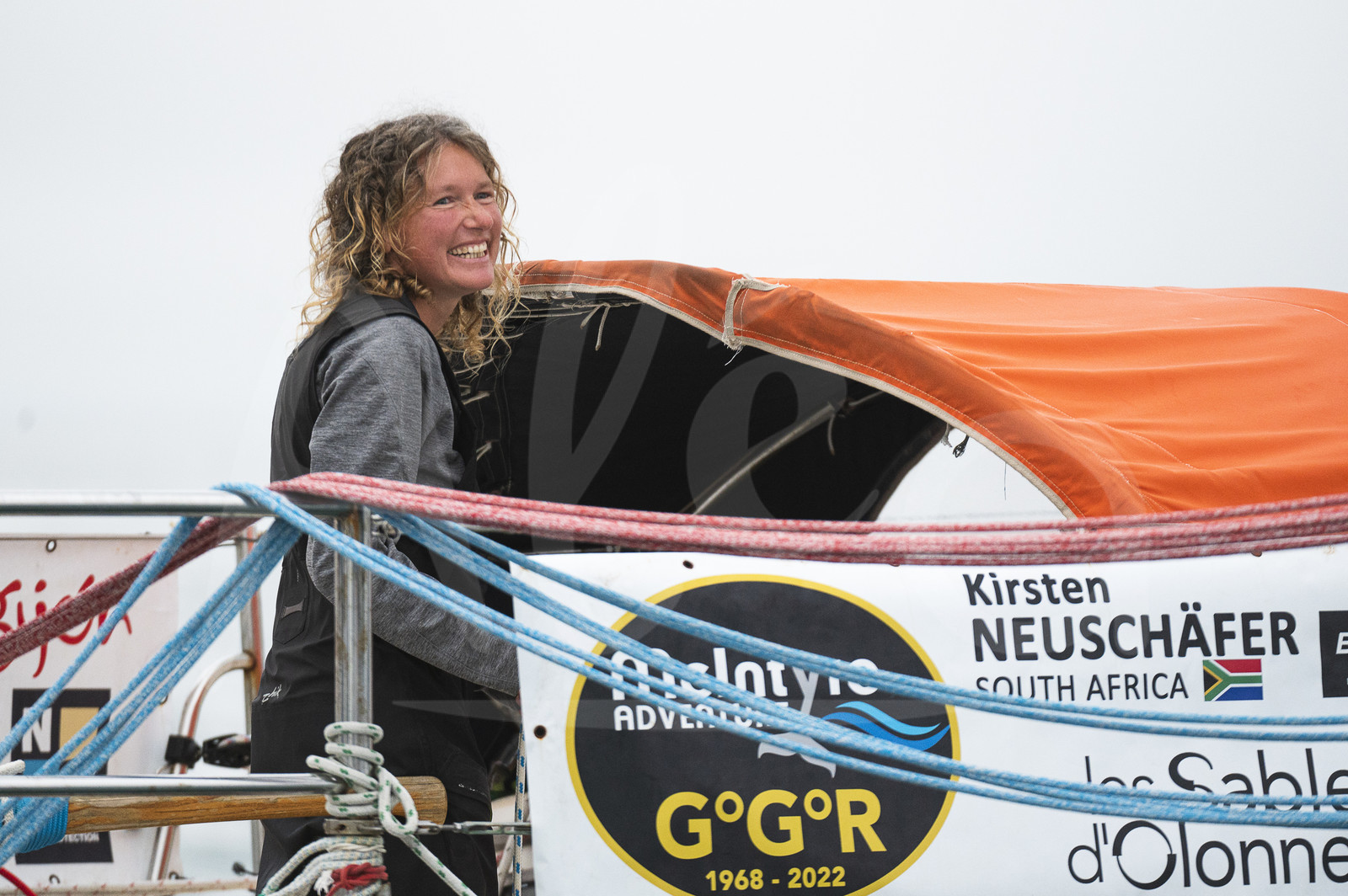 Description | LES SABLES D’OLONNE, FRANCE - APRIL 27: South African skipper Kirsten Neuschäfer wins the round the world solo sailing race without any assistance, or electronics, on April 27, 2023 in Les Sables d’Olonne, France. (Photo by Olivier Blanchet/ALeA) |