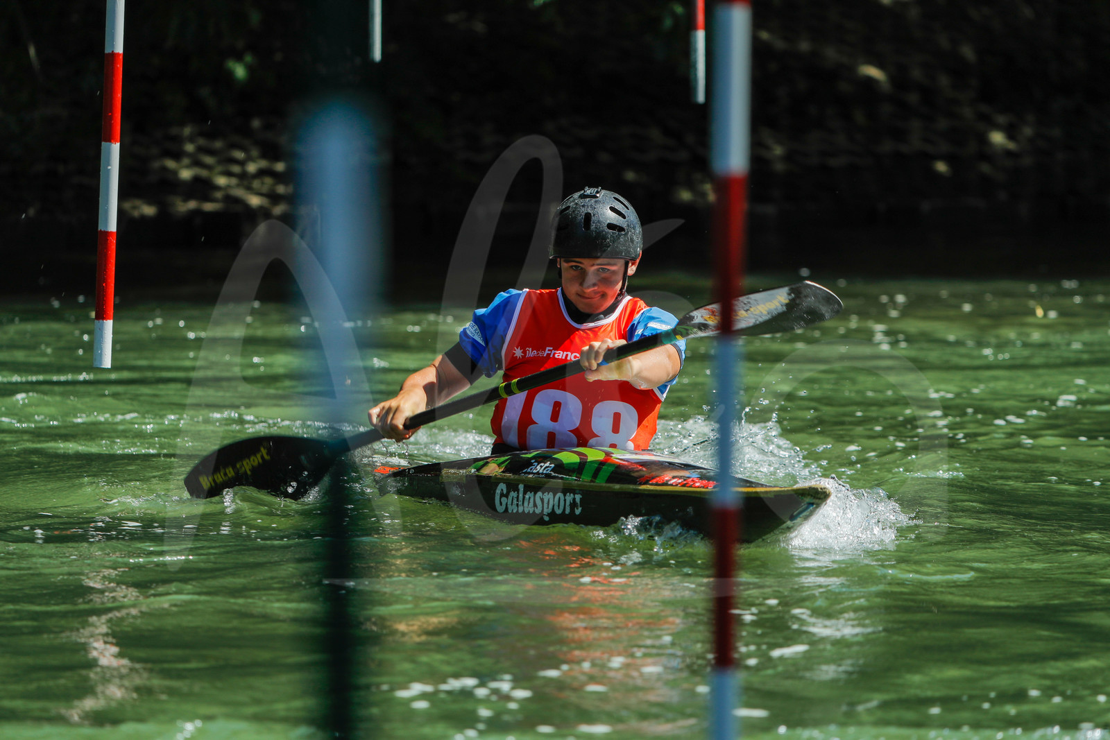 | Description | CHAMPS SUR MARNE, FRANCE - Juin 25, 2023 : Loig Le Guennec du Torcy CK, est photographié en action lors du championnat régional de canoë-kayak de Champs Sur Marne, le 25 juin 2023. (photo by Stéphane Allaman / Alea) |