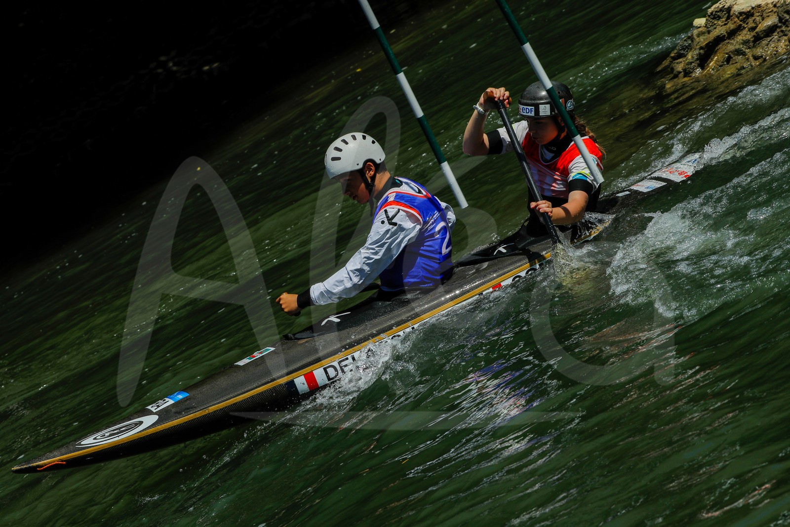| Description | CHAMPS SUR MARNE, FRANCE - Juin 25, 2023 : Jo Rivrin Delfosse et Irene Combes du CK Club France, est photographié en action lors du championnat régional de canoë-kayak de Champs Sur Marne, le 25 juin 2023. (photo by Stéphane Allaman / Alea) |