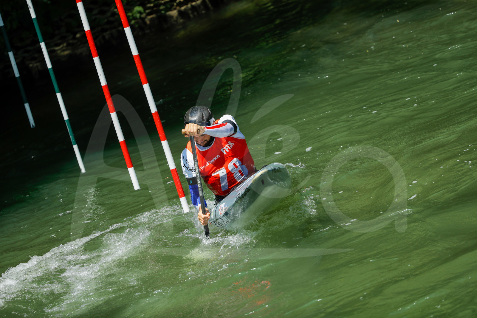 | Description | CHAMPS SUR MARNE, FRANCE - Juin 25, 2023 : Yohann Senechault du CK Club France, est photographié en action lors du championnat régional de canoë-kayak de Champs Sur Marne, le 25 juin 2023. (photo by Stéphane Allaman / Alea) |