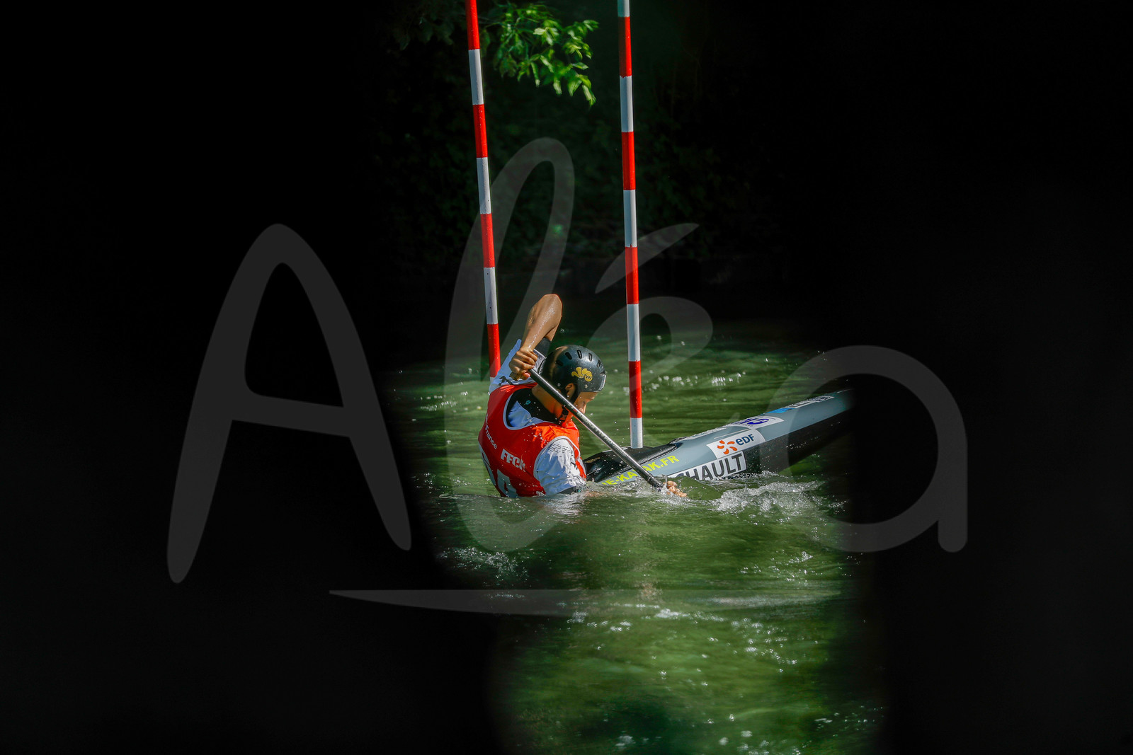 | Description | CHAMPS SUR MARNE, FRANCE - Juin 25, 2023 : Matheo Senechault du CK Club France, est photographié en action lors du championnat régional de canoë-kayak de Champs Sur Marne, le 25 juin 2023. (photo by Stéphane Allaman / Alea) |