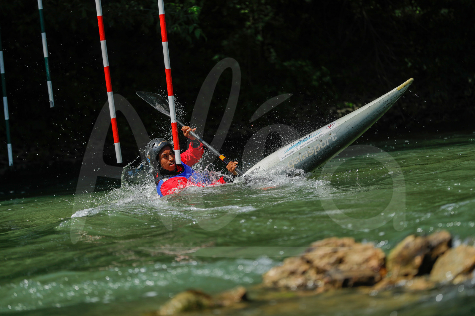| Description | CHAMPS SUR MARNE, FRANCE - Juin 25, 2023 : Kavishan Kulatunga du Red Star Club Champigny, est photographié en action lors du championnat régional de canoë-kayak de Champs Sur Marne, le 25 juin 2023. (photo by Stéphane Allaman / Alea) |