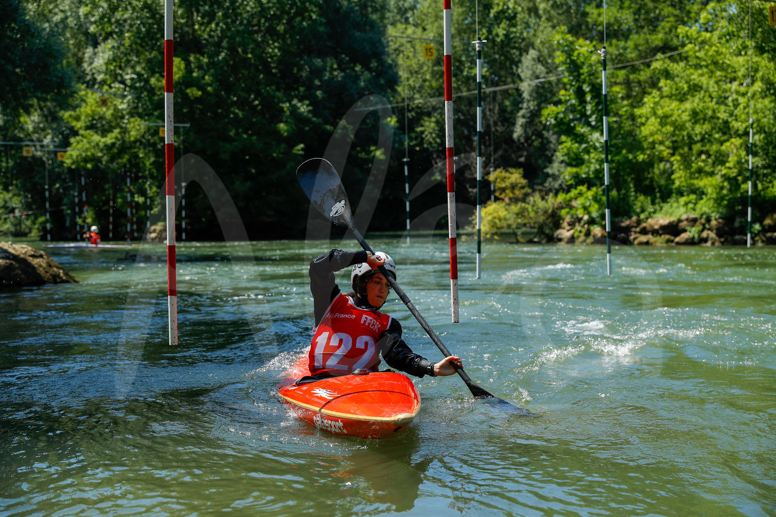 | Description | CHAMPS SUR MARNE, FRANCE - Juin 25, 2023 : Clemence Debayle du Red Star Club Champigny, est photographié en action lors du championnat régional de canoë-kayak de Champs Sur Marne, le 25 juin 2023. (photo by Stéphane Allaman / Alea) |