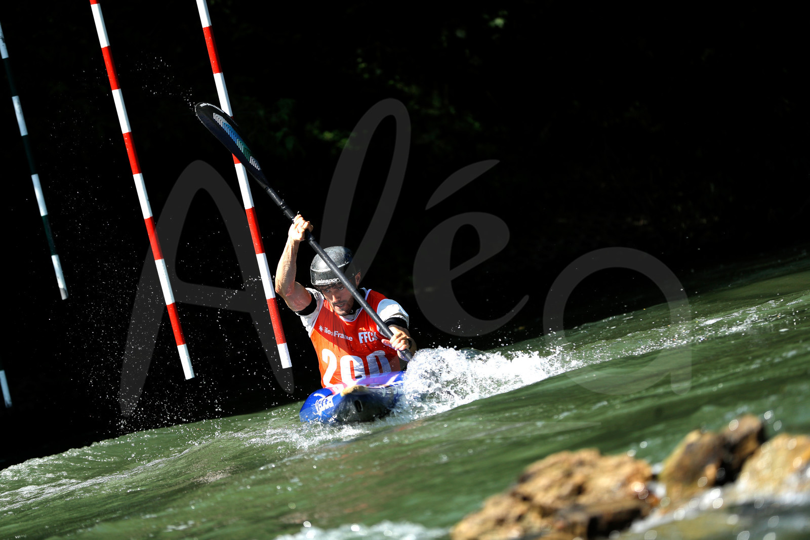 | Description | CHAMPS SUR MARNE, FRANCE - Juin 25, 2023 : Timeo Capri Pericard du CK Club de Mehun, est photographié en action lors du championnat régional de canoë-kayak de Champs Sur Marne, le 25 juin 2023. (photo by Stéphane Allaman / Alea) |