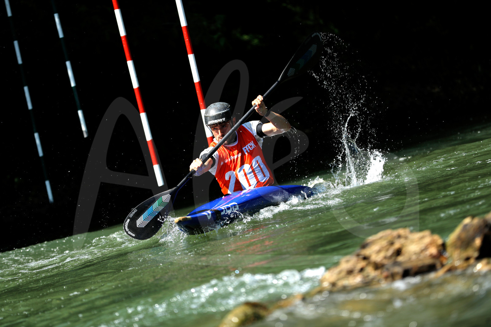 | Description | CHAMPS SUR MARNE, FRANCE - Juin 25, 2023 : Timeo Capri Pericard du CK Club de Mehun, est photographié en action lors du championnat régional de canoë-kayak de Champs Sur Marne, le 25 juin 2023. (photo by Stéphane Allaman / Alea) |