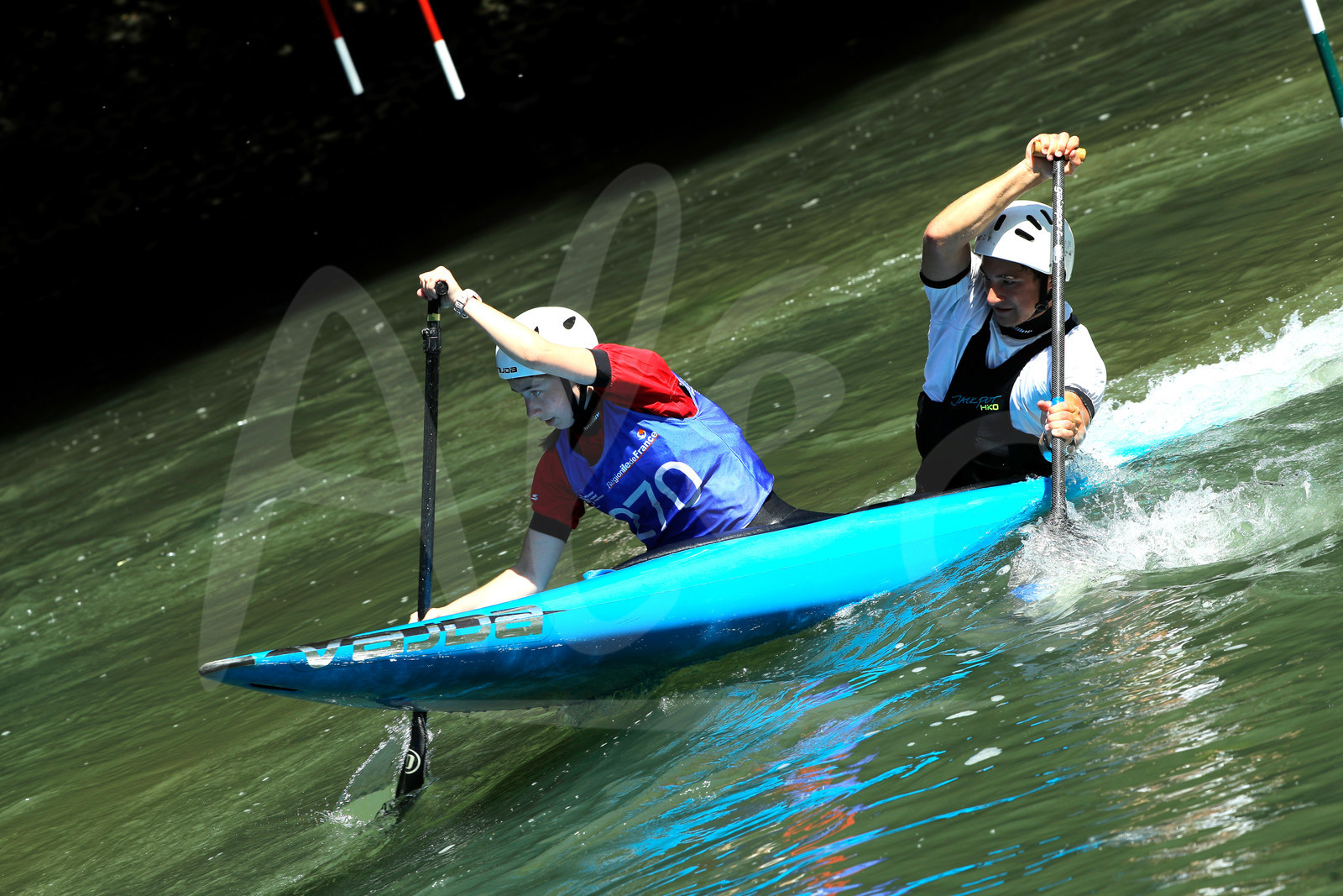 | Description | CHAMPS SUR MARNE, FRANCE - Juin 25, 2023 : Maelys Talbot et Robin Le Fellic du CK Florentais et du Chateauneuf Pagaie Aventure, est photographié en action lors du championnat régional de canoë-kayak de Champs Sur Marne, le 25 juin 2023. (photo by Stéphane Allaman / Alea) |