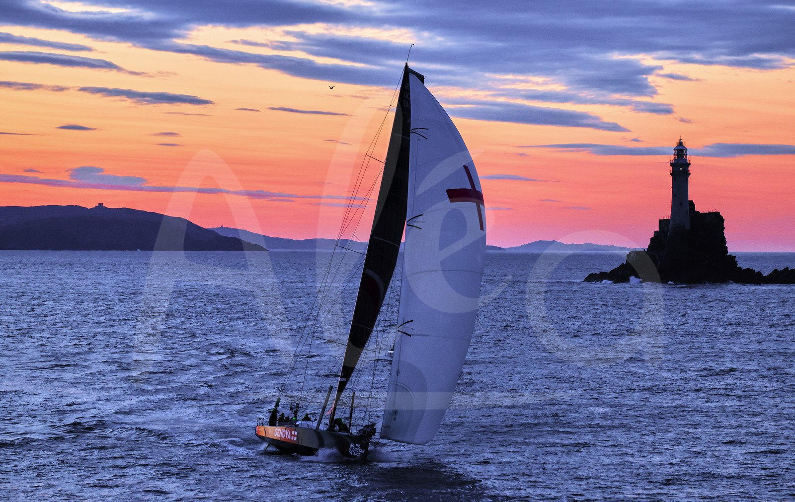| Description | SISI, Skipper: Gerwin Jansen, Class: IRC Super Zero, Sail No: AUT1, LOA: "20, 37", Design: VO 65, County/State: UK is captured in action during the Fastnet Race 2023 from Cowes to Cherbourg, on July 24, 2023. Photo by Carlo Borlenghi / Alea |
