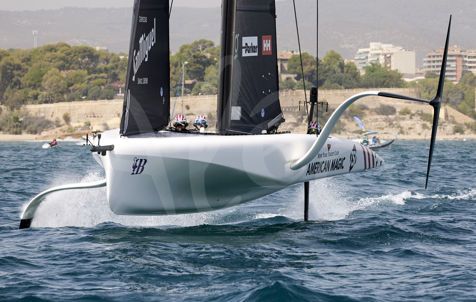 Description | VILANOVA I LA GELTRU, SPAIN - SEPTEMBER 17: The NYC American Magic boat is pictured in action during the 37th America’s Cup pre-regatta in Vilanova i La Geltru, spain, on september 17th, 2023. (Photo by Carlo Borlenghi / Alea) |