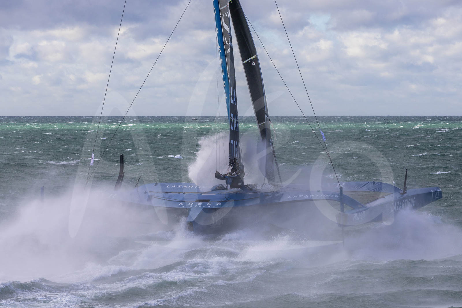 Description | LE HAVRE, FRANCE - OCTOBER 29 : Ultim SVR-Lazartigue, skippers Francois Gabart and Tom Laperche are taking the start of Transat Jacques Vabre in Le Havre, France, on October 29, 2023. (photo by Jean-Marie Liot / Alea) |
