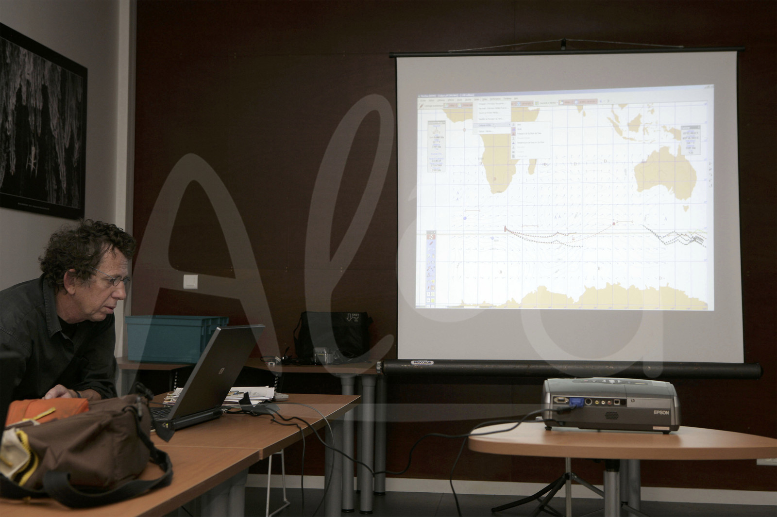 | Description | SAILING -POLE FRANCE - PORT LA FORET (FRA) - 24/09/2008 - PHOTO: JEAN MARIE LIOT / Alea.WEATHER FORECAST TRAINING SESSION FOR THE SKIPPERS OF THE VENDEE GLOBE - MARC GUILLEMOT, ROLAND JOURDAIN, JEAN-PIERRE DICK, YANN ELIES, MICHEL DESJOYEAUX AND JEAN-YVES BERNOT (ENGINEER) |