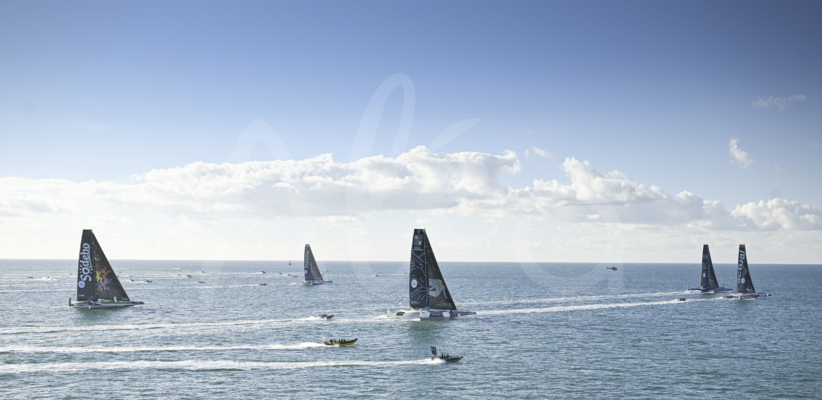 Description | BREST, FRANCE - JANUARY 07 : Ultim boats are pictured during start of the Arkea Ultim Challenge sailing race in Brest, France, on January 07, 2024. (photo by Vincent Curutchet / Alea) |