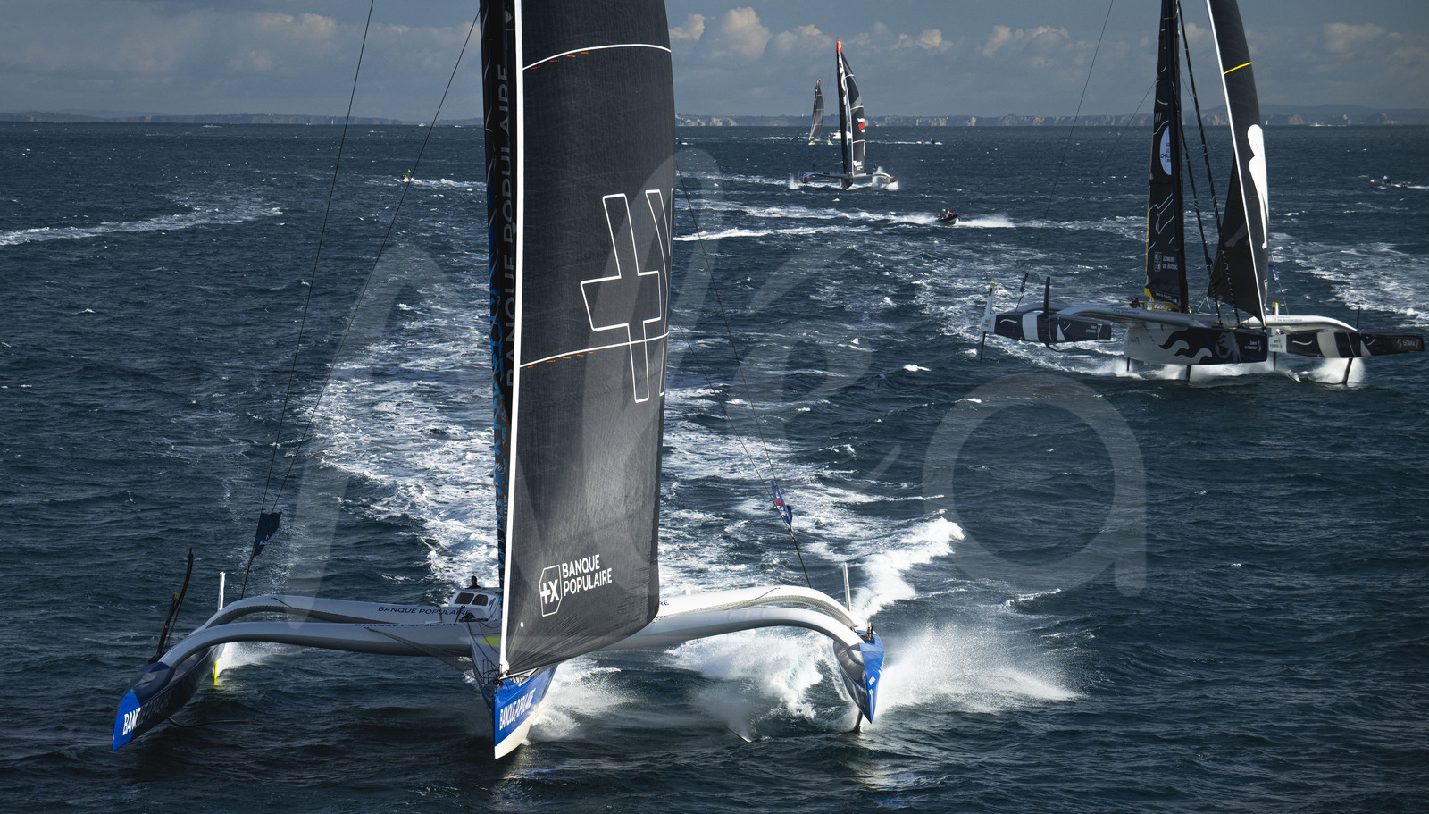 Description | BREST, FRANCE - JANUARY 07 : Banque Populaire XI and Maxi Edmond de Rothschild are pictured during start of the Arkea Ultim Challenge sailing race in Brest, France, on January 07, 2024. (photo by Vincent Curutchet / Alea) |