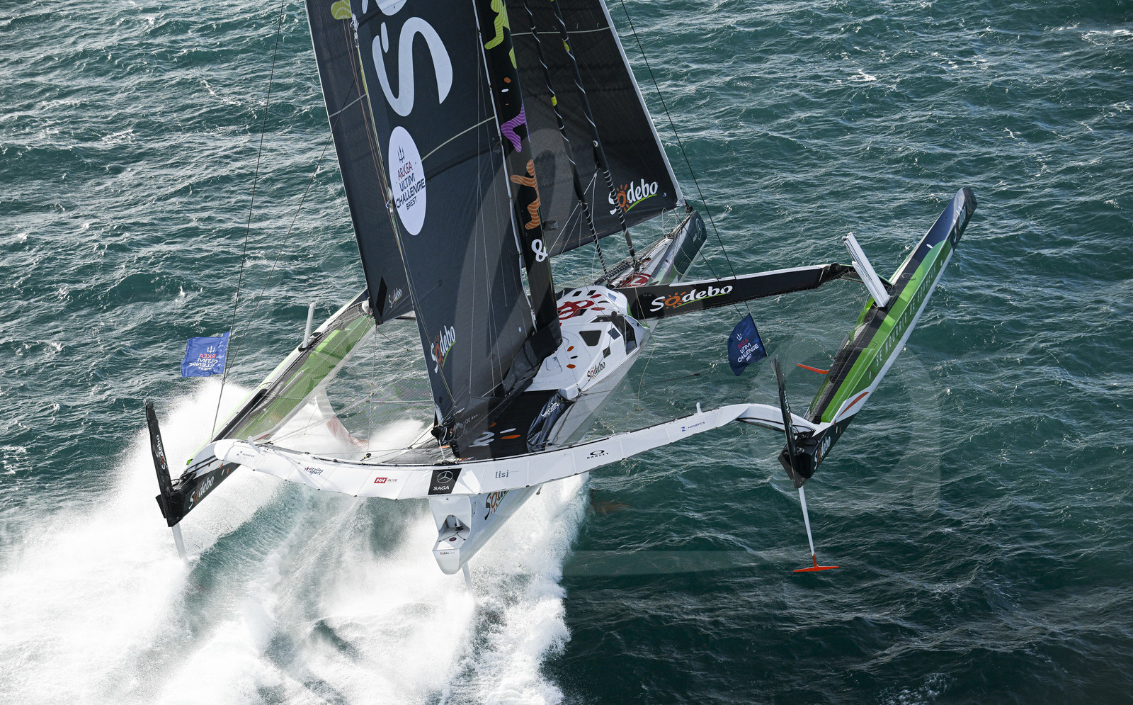 Description | BREST, FRANCE - JANUARY 07 : Sodebo Ultim 3 is pictured during start of the Arkea Ultim Challenge sailing race in Brest, France, on January 07, 2024. (photo by Vincent Curutchet / Alea) |