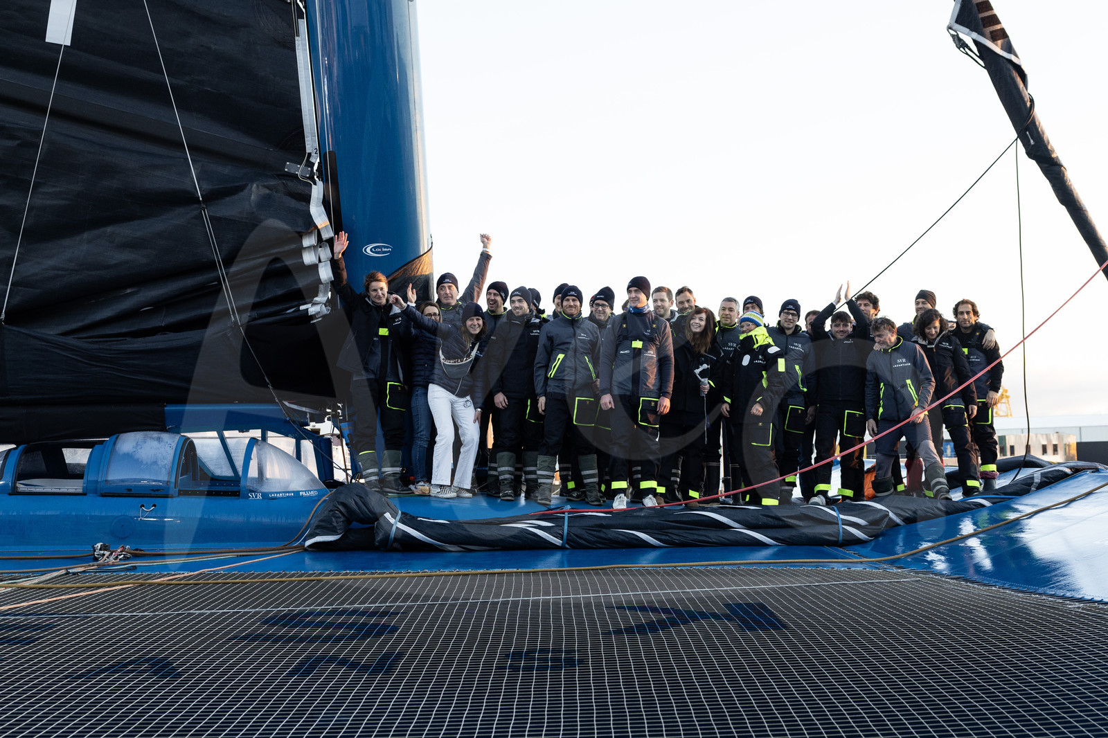 Description | BREST, FRANCE - JANUARY 07 : SVR-Lazartigue skipper Tom Laperche is portraited with his team and manager François Gabart during start of the Arkea Ultim Challenge sailing race in Brest, France, on January 07, 2024. (photo by Jean-Marie Liot / Alea) |