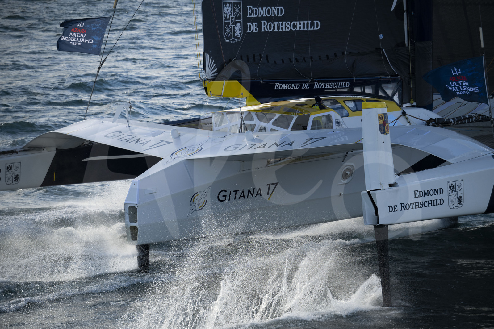 Description | BREST, FRANCE - JANUARY 07 : Maxi Edmond de Rothschild is pictured during start of the Arkea Ultim Challenge sailing race in Brest, France, on January 07, 2024. (photo by Vincent Curutchet / Alea) |