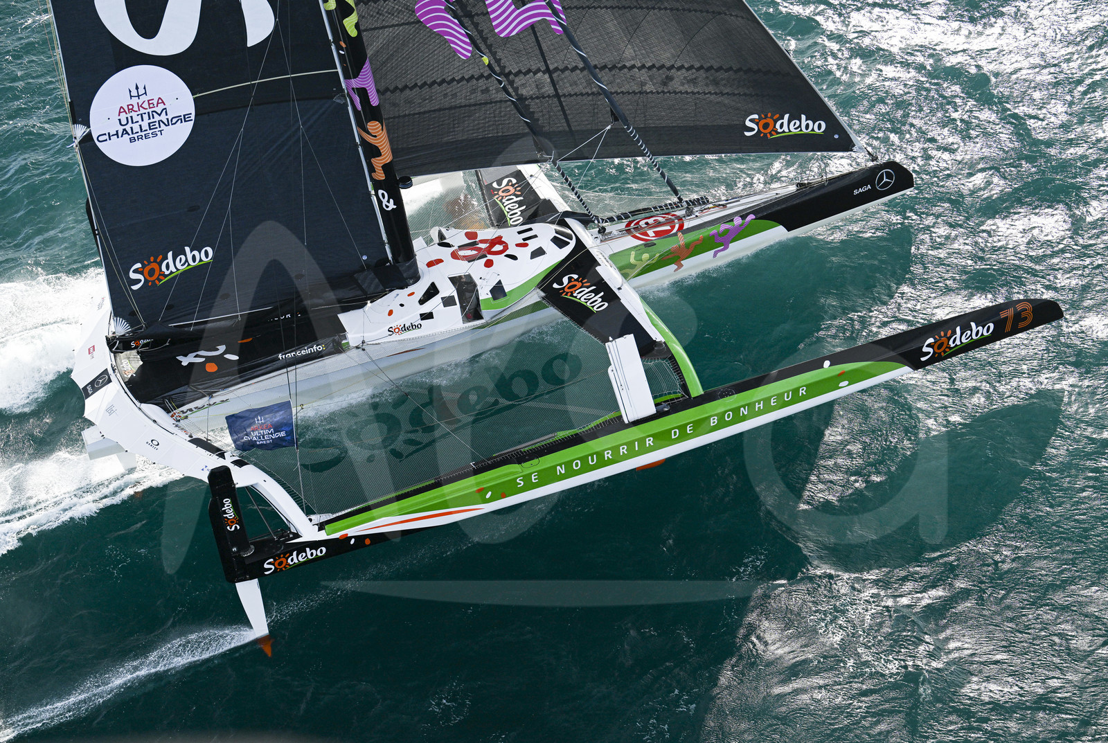 Description | BREST, FRANCE - JANUARY 07 : Sodebo Ultim 3 is pictured during start of the Arkea Ultim Challenge sailing race in Brest, France, on January 07, 2024. (photo by Vincent Curutchet / Alea) |