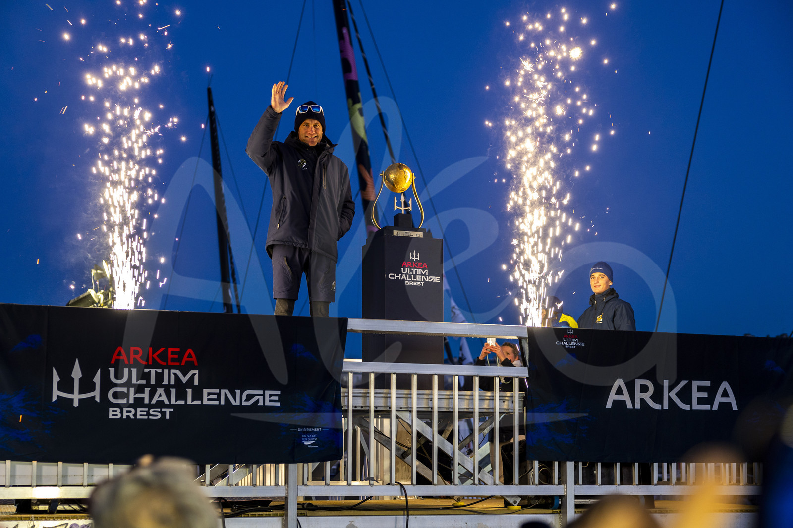 Description | BREST, FRANCE - JANUARY 06 : Maxi Edmond de Rothschild skipper Charles Caudrelier is portraited with trophy during start of the Arkea Ultim Challenge sailing race in Brest, France, on January 06, 2024. (photo by Jean-Marie Liot / Alea) |