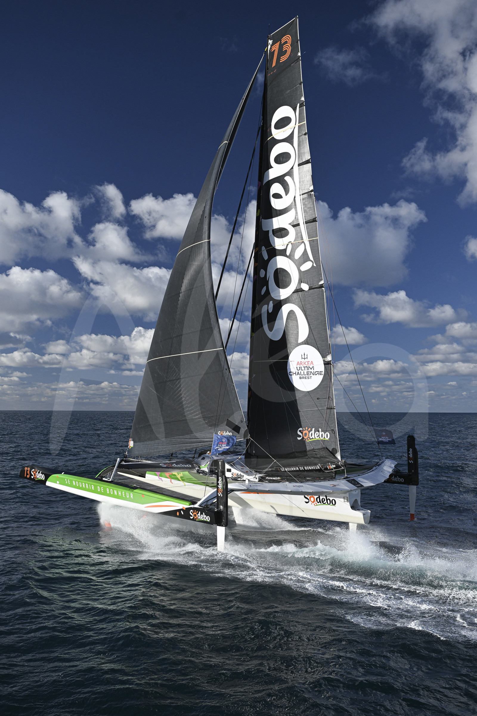 Description | BREST, FRANCE - JANUARY 07 : Sodebo Ultim 3 is pictured during start of the Arkea Ultim Challenge sailing race in Brest, France, on January 07, 2024. (photo by Vincent Curutchet / Alea) |
