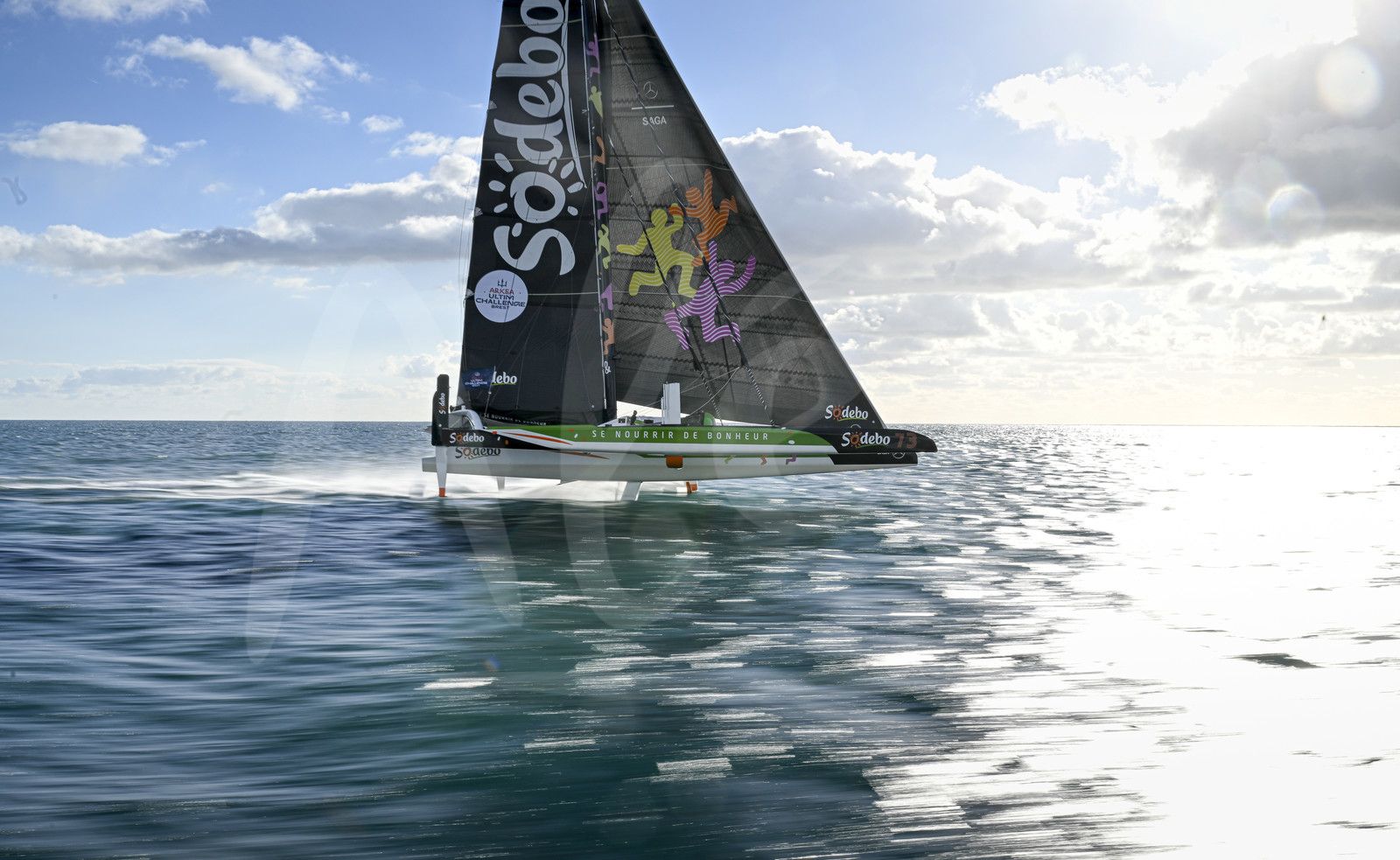 Description | BREST, FRANCE - JANUARY 07 : Sodebo Ultim 3 is pictured during start of the Arkea Ultim Challenge sailing race in Brest, France, on January 07, 2024. (photo by Vincent Curutchet / Alea) |