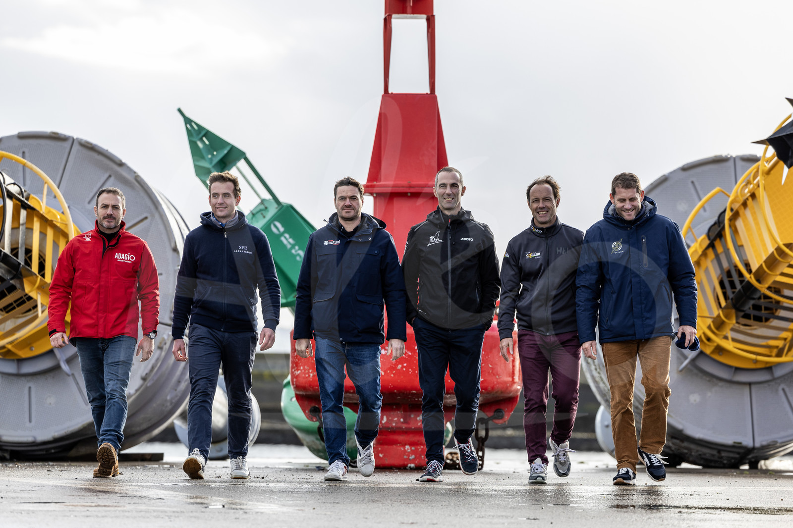 | Description | BREST, FRANCE - JANUARY 06 : Ultim boats skippers Eric Peron, Tom Laperche, Anthony Marchand, Armel Le Cleac’h, Thomas Coville and Charles Caudrelier are portraited before start of the Arkea Ultim Challenge sailing race in Brest, France, on January 06, 2024. (photo by Jean-Marie Liot / Alea) |