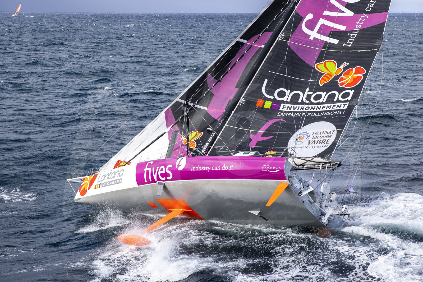 | Description | IMOCA Five-Lantana Environnement, louis Duc, Rémi Aubrun, lors départ des 48H Azimut, lors du Défi Azimut-Lorient Agglomération 2023, Lorient le 21/09/2023, Photo © Jean-Marie Liot / Alea |