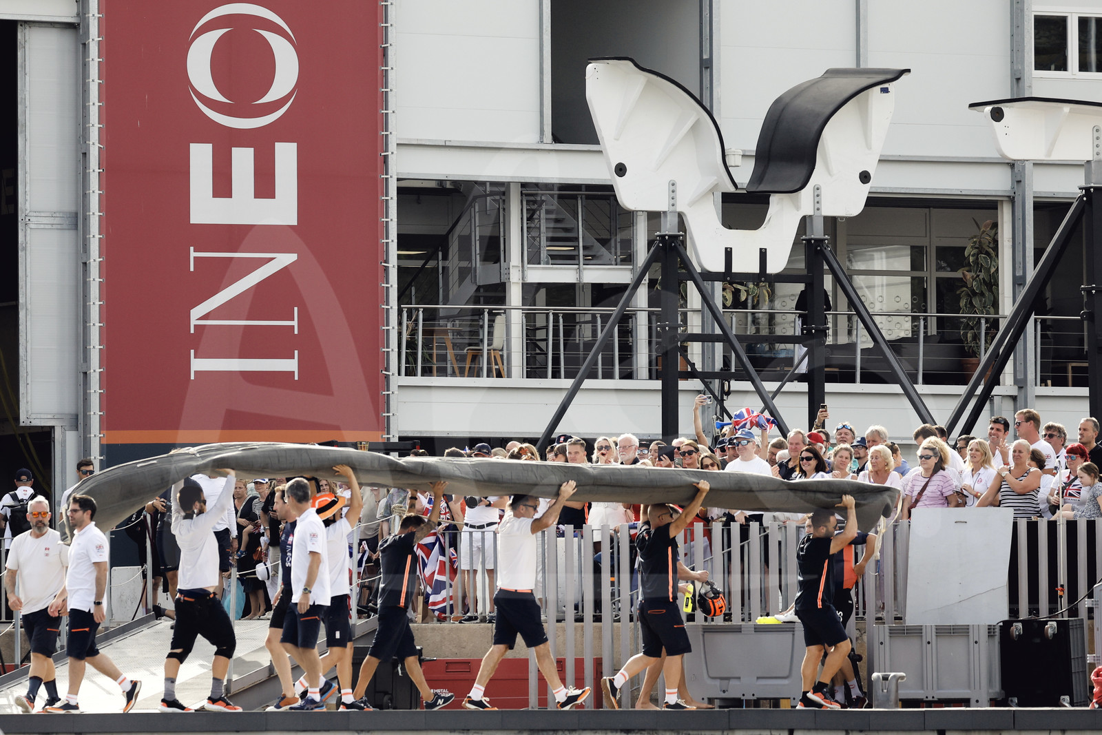 Description | BARCELONA, SPAIN - OCTOBER 16, 2024 : Ineos Brittania team members are photographed holding a main sail during the 37 America’s Cup, on October 16, 2024, in Barcelona, Spain (photo by Carlo Borlenghi / Alea) |