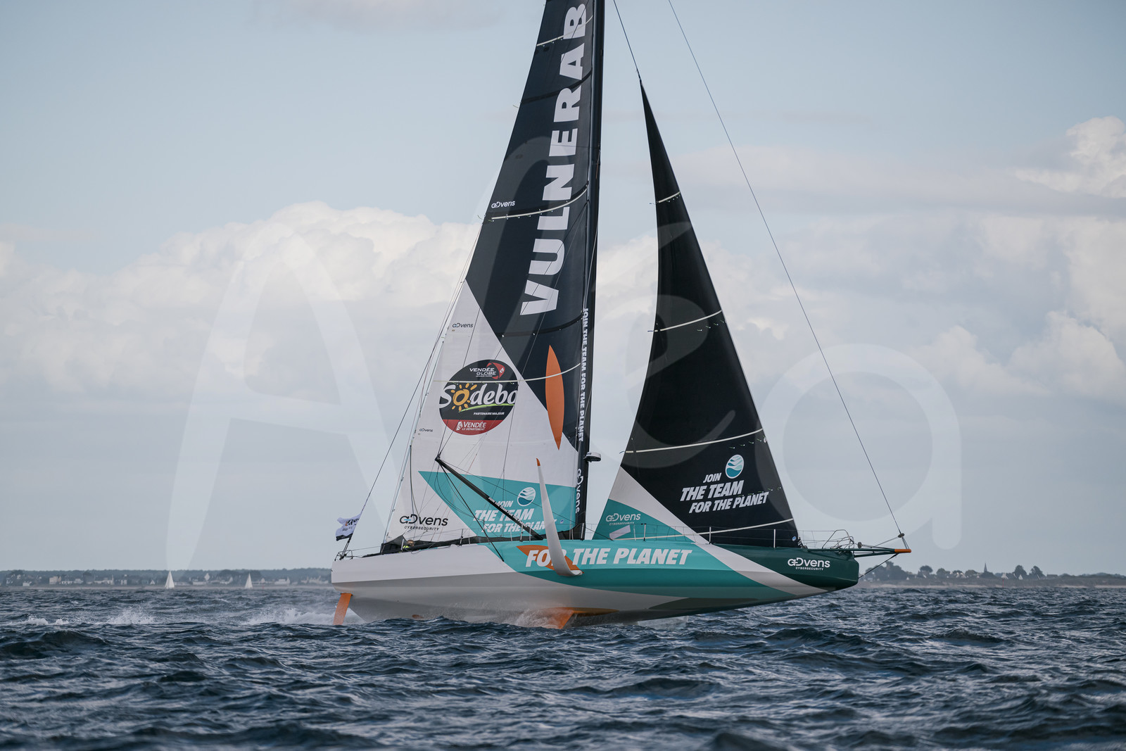 Description | LORIENT, FRANCE - SEPTEMBER 11, 2024 : VULNERABLE skipper Sam Goodchild (GBR) is photographed sailing with guests during the Runs of the Defi Azimut, on September 11, 2024 in Lorient, France - (Photo by Olivier Blanchet / Alea) |