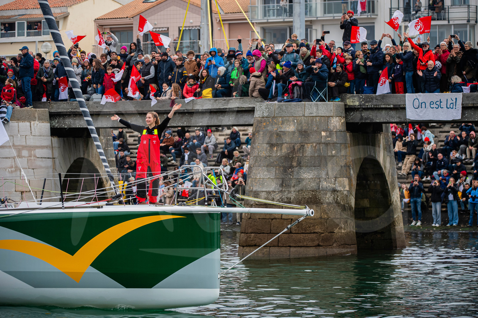 Description | LES SABLES D'OLONNE, FRANCE - NOVEMBER 10, 2024: DeVenir skipper Violette Dorange (FRA) is photographed in the channel before start of the Vendee Globe, on November 10, 2024 in Les Sables d'Olonne, France - (Photo by Bernard Le Bars / Alea) |