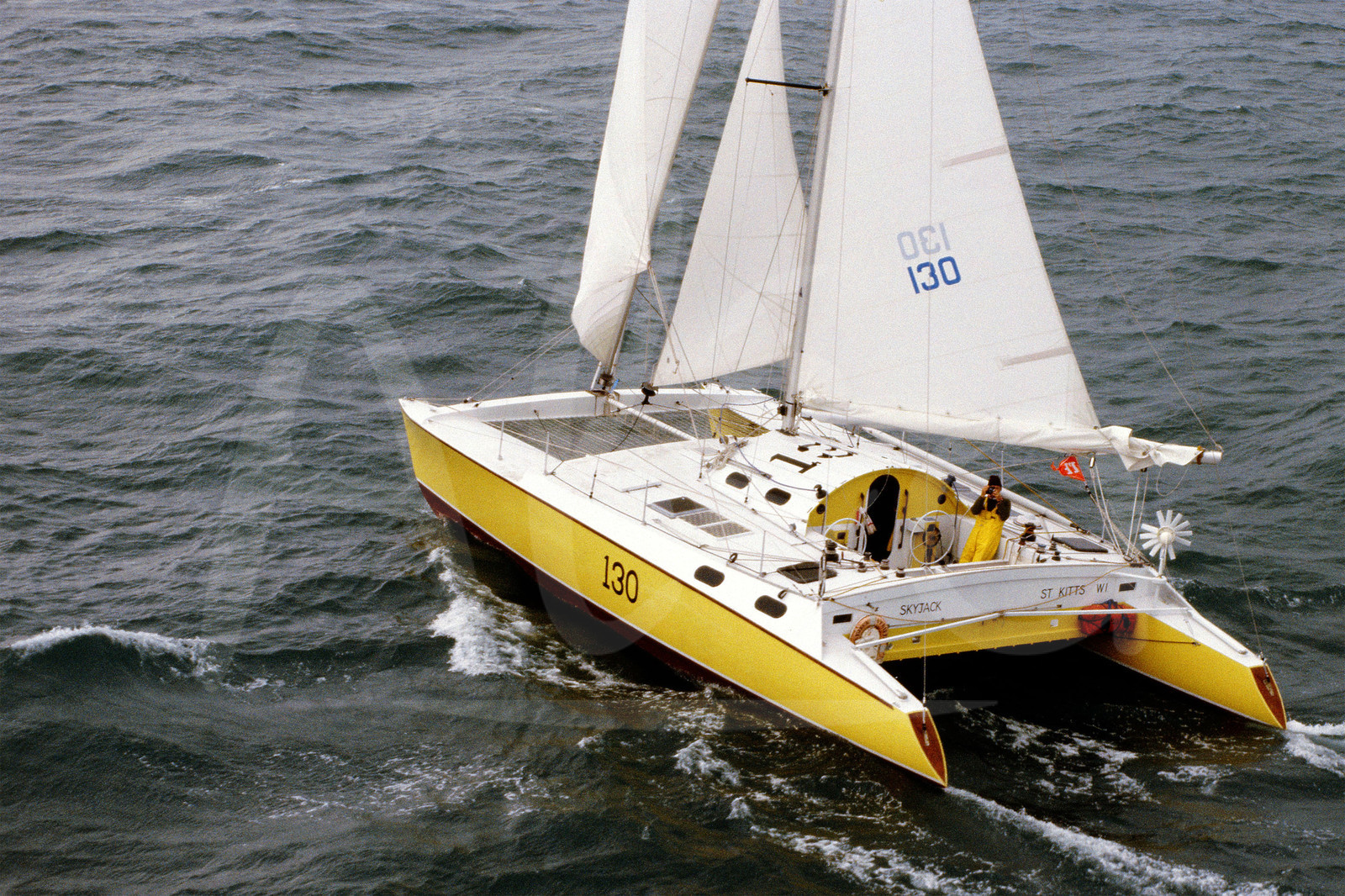 Description | SAILING - TRANSATLANTIC RACE - ROUTE DU RHUM HISTORY - PHOTO : BERNARD RUBINSTEIN / ALEA ROUTE DU RHUM 1978 - SKYJACK / SKIPPER : PHILIPPE WALWYN / 23RD |