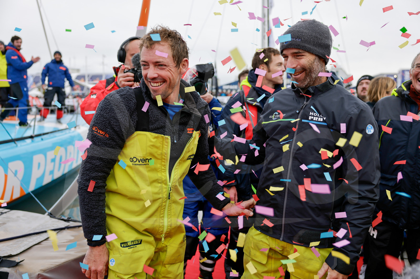 | Description | LES SABLES D'OLONNE, FRANCE - JANUARY 25, 2025 : VULNERABLE skipper Thomas Ruyant (FRA) and HOLCIM - PRB skipper Nicolas Lunven (FRA) are photographed at pontoon in the Vendee Globe, on January 25, 2025 in Les Sables d'Olonne, France - (Photo by Anne Beauge / Alea) |