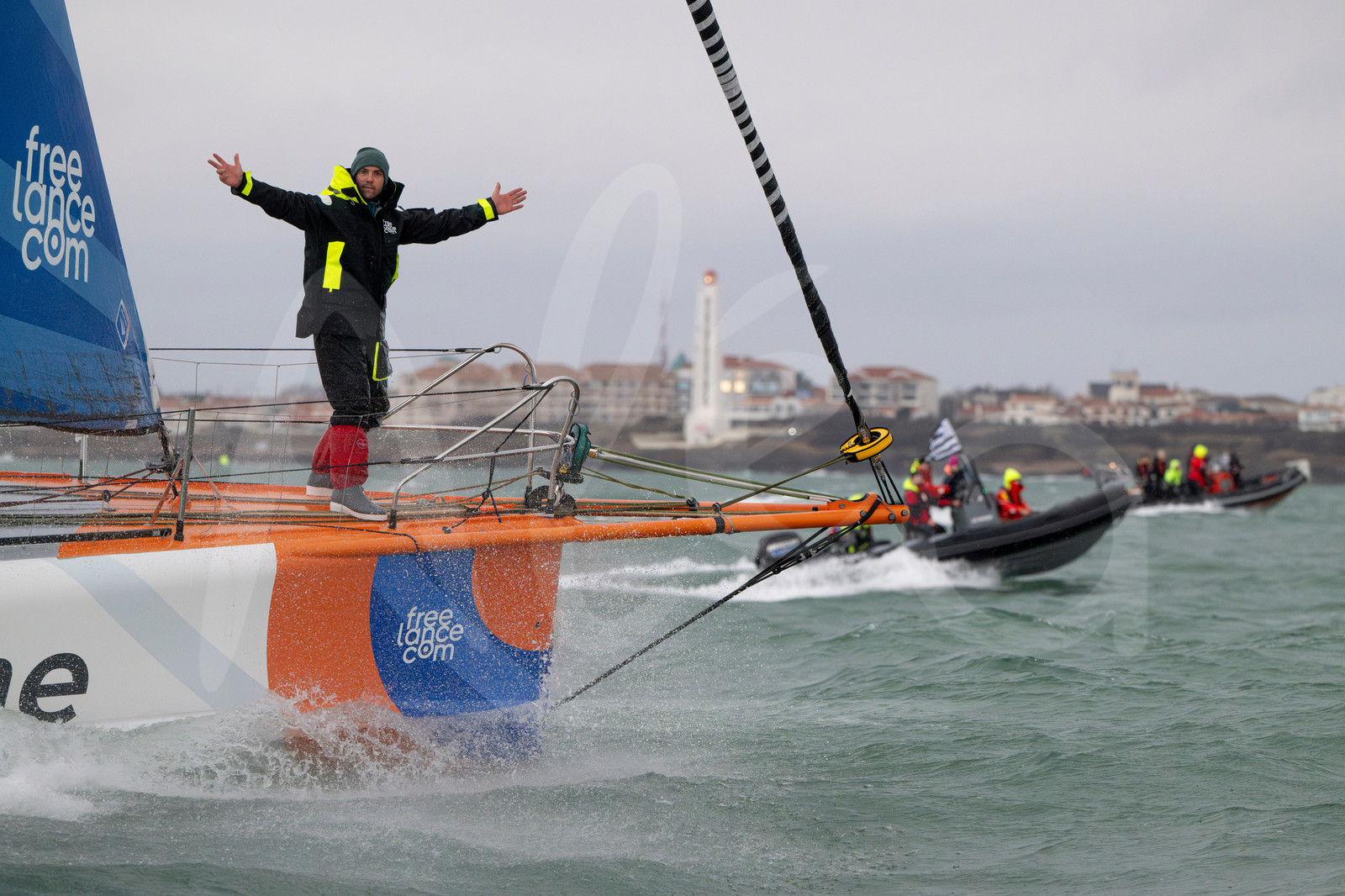 Description | LES SABLES D’OLONNE, FRANCE - FEBRUARY 08, 2025 : Freelance.com skipper Guirec Soudée (FRA) is photographed taking 23rd place in the Vendee Globe, on February 08, 2025 in Les Sables d'Olonne, France - (Photo by Olivier Blanchet / Alea) |