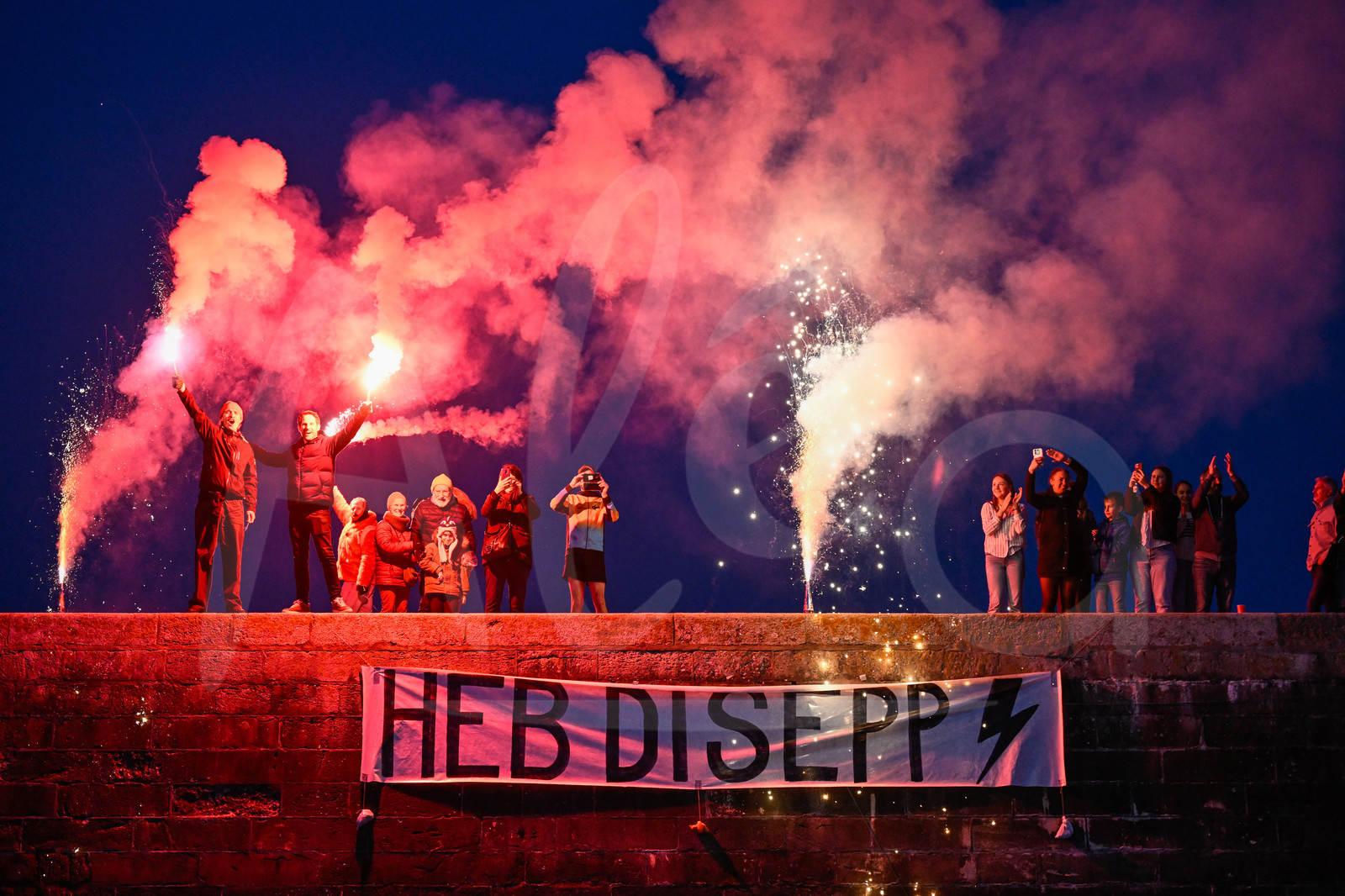 Description | LES SABLES D’OLONNE, FRANCE - FEBRUARY 17, 2025 : Tut Gut. Sailing skipper Oliver Heer (SUI) is celebrating with flares taking 29th place in the Vendee Globe under a very calm weather, on February 17, 2025 in Les Sables d'Olonne, France - (Photo by Jean-Louis Carli / Alea) |