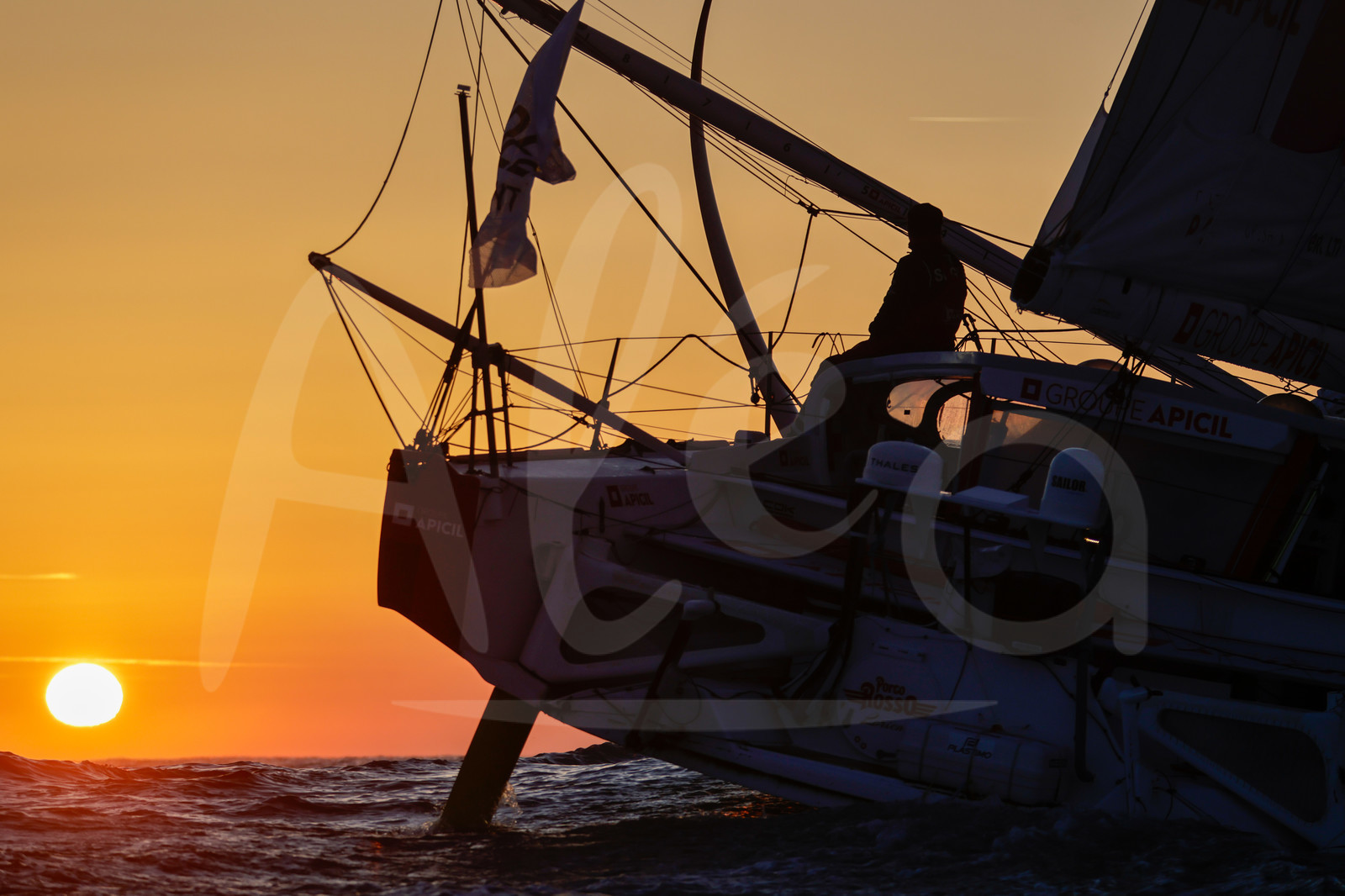 Description | LES SABLES D’OLONNE, FRANCE - FEBRUARY 03, 2025 : Groupe APICIL skipper Damien Seguin (FRA) is photographed taking 15th place in the Vendee Globe, on February 03, 2025 in Les Sables d'Olonne, France - (Photo by Anne Beauge / Alea) |