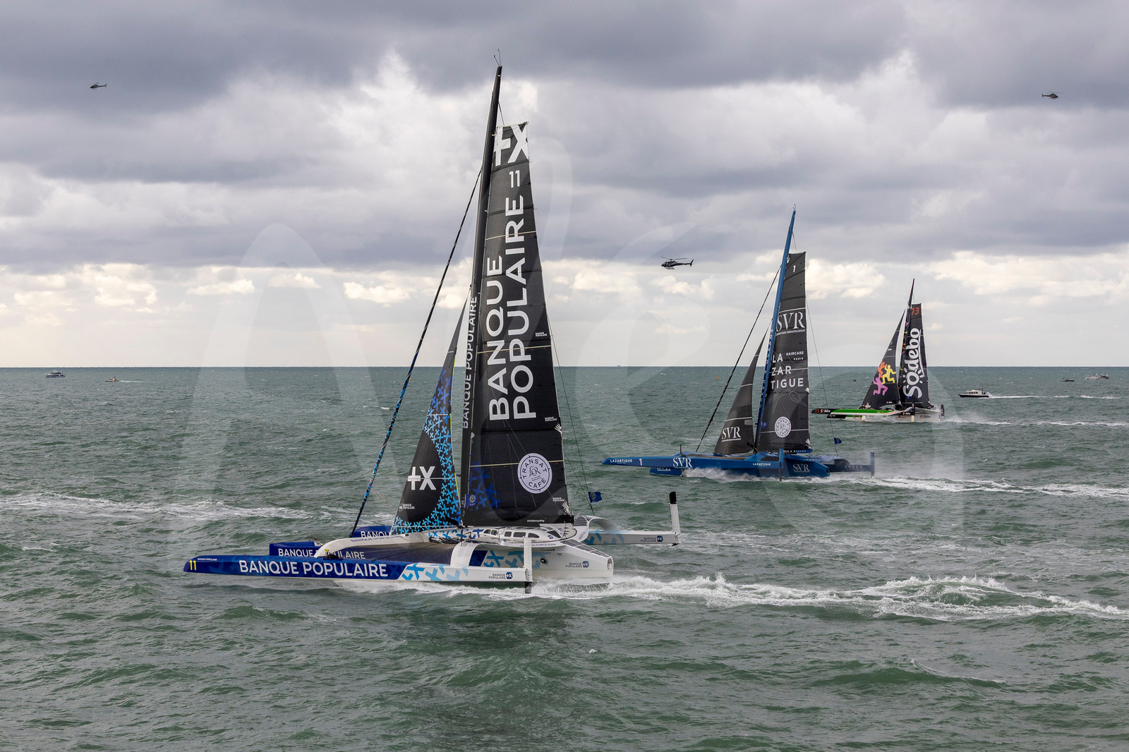 | Description | LE HAVRE, FRANCE: Ultim SVR-Lazartigue and Maxi Banque Populaire XI and Sodebo Ultim 3 are photographed at the start of the Transat Café l'OR 2025 on October 26, 2025 in Le Havre, France. (Photo by Jean-Marie Liot / Alea) |