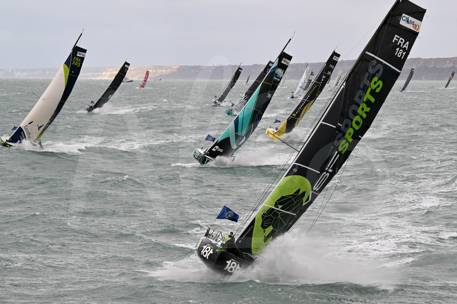 | Description | LE HAVRE, FRANCE: General view of the Class 40 fleet competes at the start of the Transat Café l'OR 2025 on October 26, 2025 in Le Havre, France. (Photo by Jean-Louis Carli / Alea) |