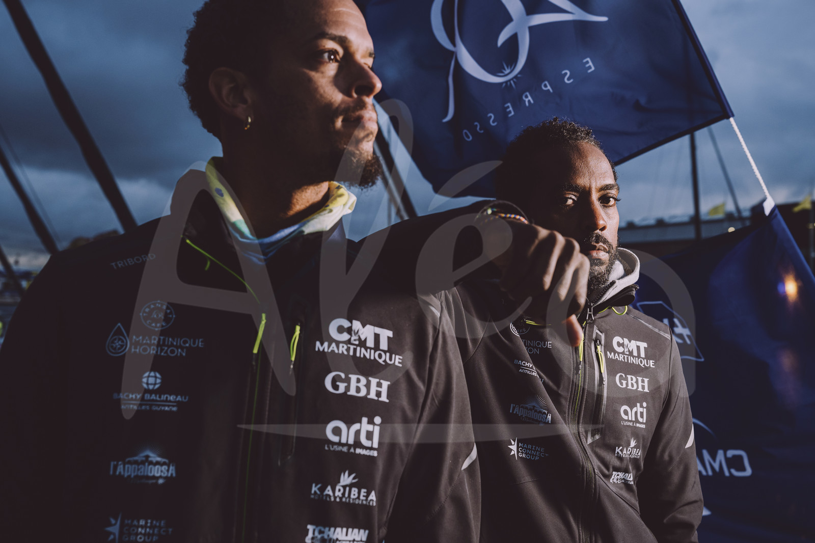 | Description | Martinique Horizon, skippers Jean-Yves Aglae and Moane Mangatalle are photographed at the Transat Café L’Or village in Le Havre, France, on October 20, 2025. (Photo by Jean-Louis Carli / Alea) |