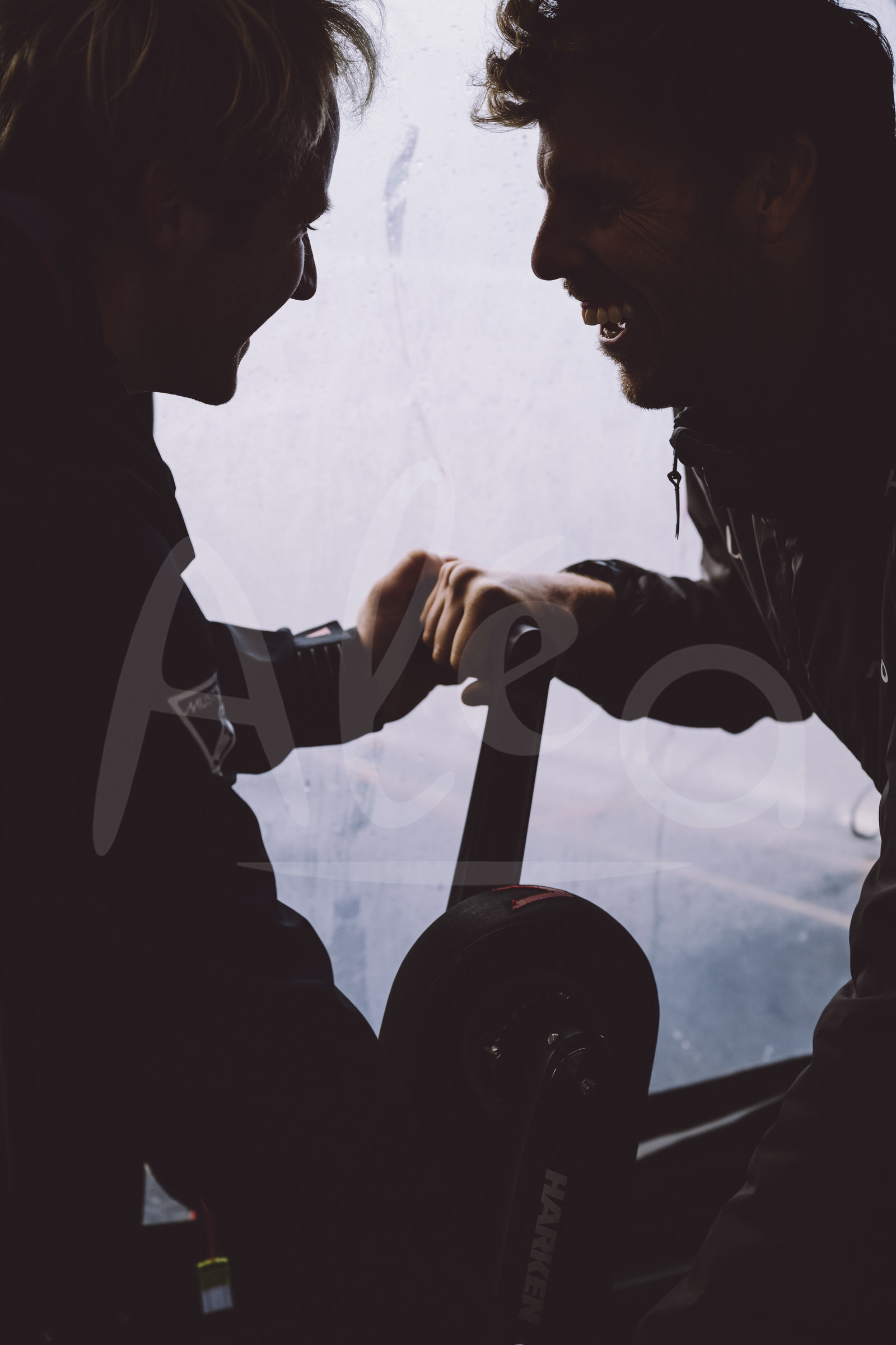 | Description | Ocean Fifty Lazare, skippers Erwan Le Draoulec and Tanguy Le Turquais are photographed being interviewed before the Transat Café L’Or in Le Havre, France, on October 17, 2025. (Photo by Jean-Louis Carli / Alea) |